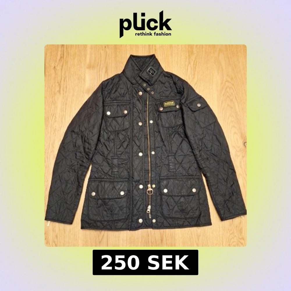 Quiltad svart jacka från Barbour International med cool ståkrage och spänne, flera fickor med tryckknappar och snygg gulddragkedja. Jackan har Barbour-märke på bröstet och är perfekt för dig som gillar klassisk stil med edge.