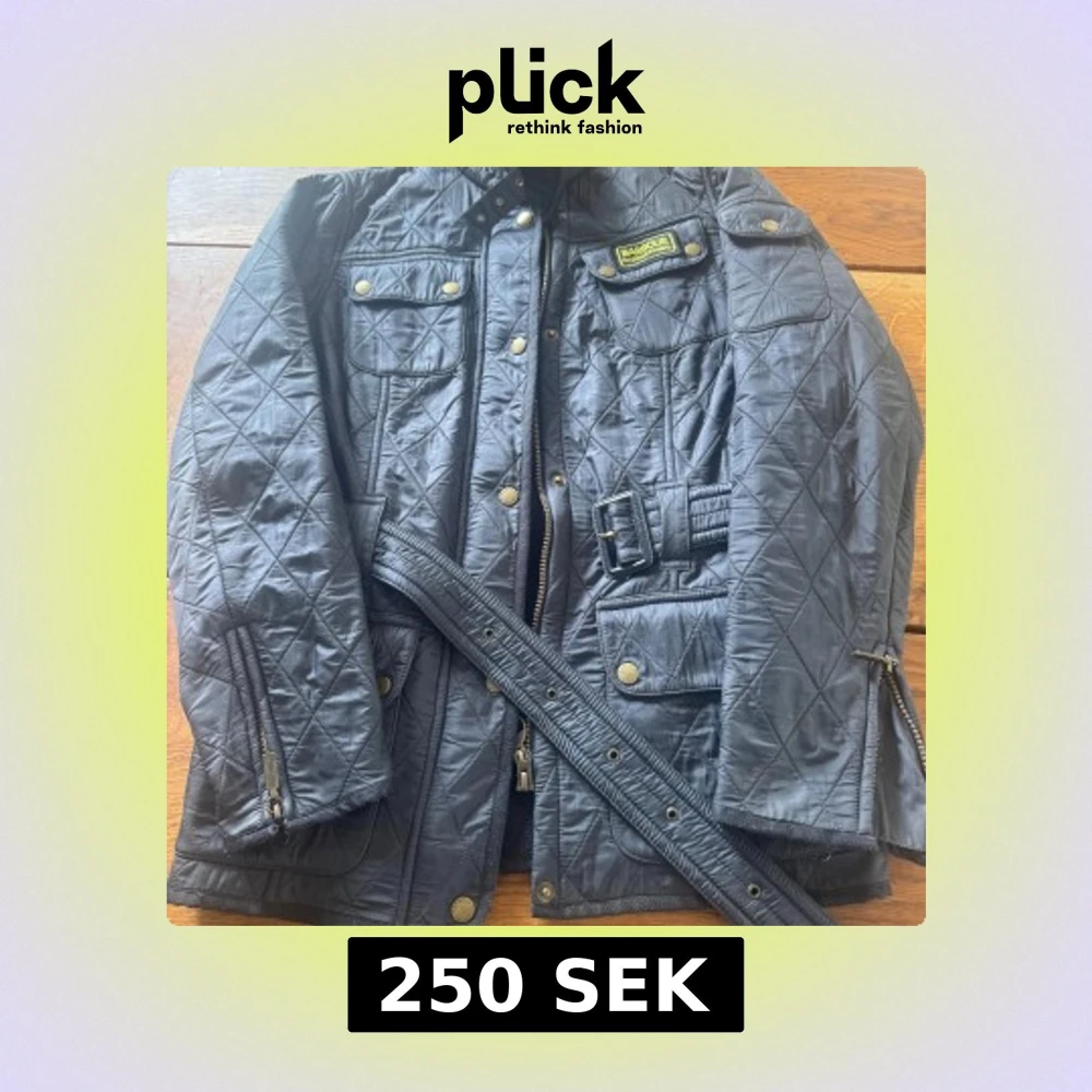 Jacka från Barbour med bälte i midjan, dragkedja och tryckknappar. Rök och djurfritt hem.