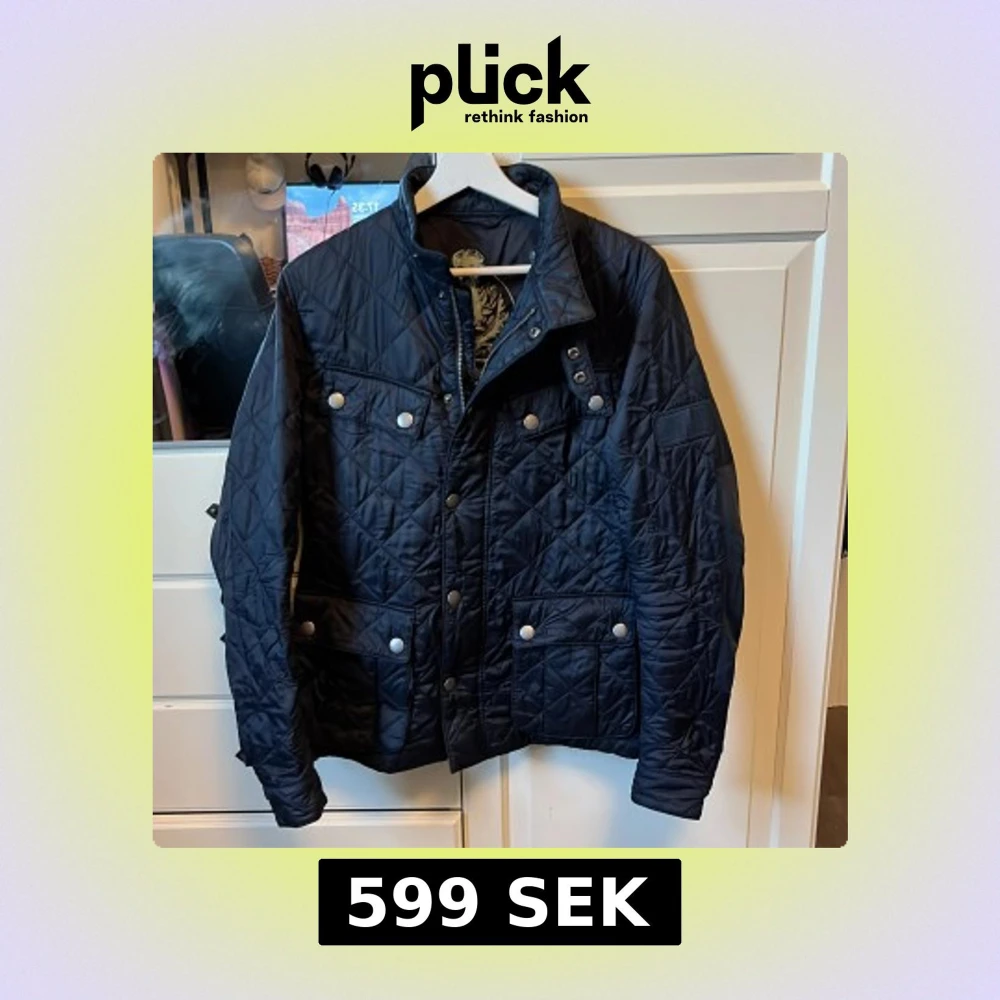 Snygg mörkblå quiltad jacka från Barbour med knappar och dragkedja. Jackan har flera praktiska fickor och en stilren design. Perfekt nu till våren. Storlek S. bara att höra av er om ni har frågor. Knappt använd.