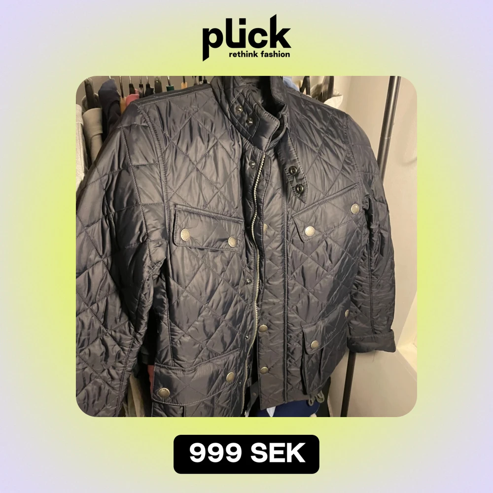 Säljer en snygg svart quiltad jacka från Barbour. Den har en stilren design med knappar och dragkedja framtill. Jackan har flera praktiska fickor och en cool illustration på insidan. Jag säljer denna jacka för att den är för liten, nypris 2400kr, pris kan diskuteras!