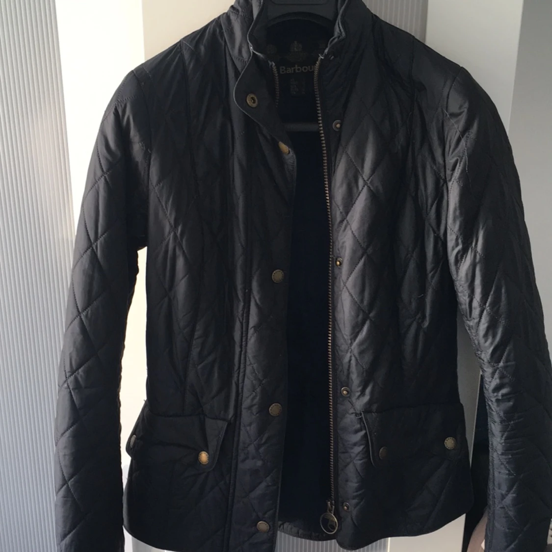Svart Barbour jacka, ganska tunn. I bra skick.