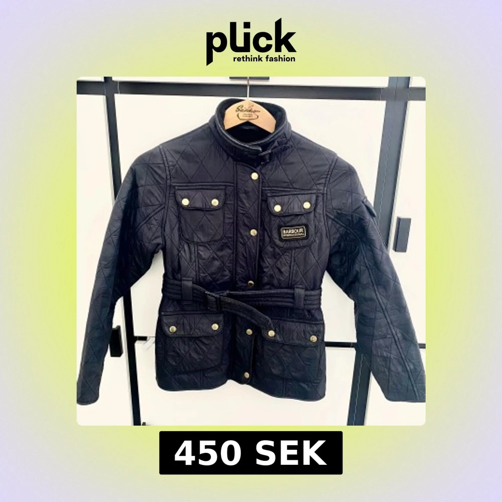 Säljer en stilren svart quiltad jacka från Barbour med bälte i midjan och knappar i guld. Jackan har flera praktiska fickor och en hög krage för extra skydd. Perfekt för kyligare dagar! Storlek 13/14 år eller S