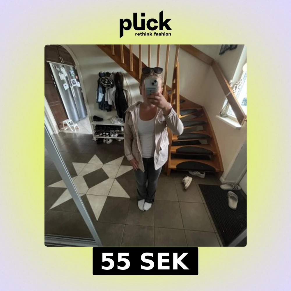 Säljer en stilren beige vindjacka med huva och dragkedja framtill. Jackan har en enkel design med resår vid ärmsluten och praktiska fickor. Perfekt för dig som vill ha en lätt jacka till vår eller sommarkvällar. Den är dock nåra jätte små fläckar, men man ser de inte alls tydligt när man har på sig den.