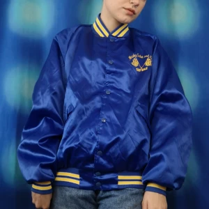 Skitcool och unik jacka köpt secondhand, reklamjacka för ett försäljningsföretag från Alaska. Glansigt fint blått tyg och med tryckknappsstägning. Har två fickor, frakten på denna ligger på 63 kr. Samfraktar gärna! 👍😌 (mer fraktkostnad kan tillkomma vid köp av flertalet varor)