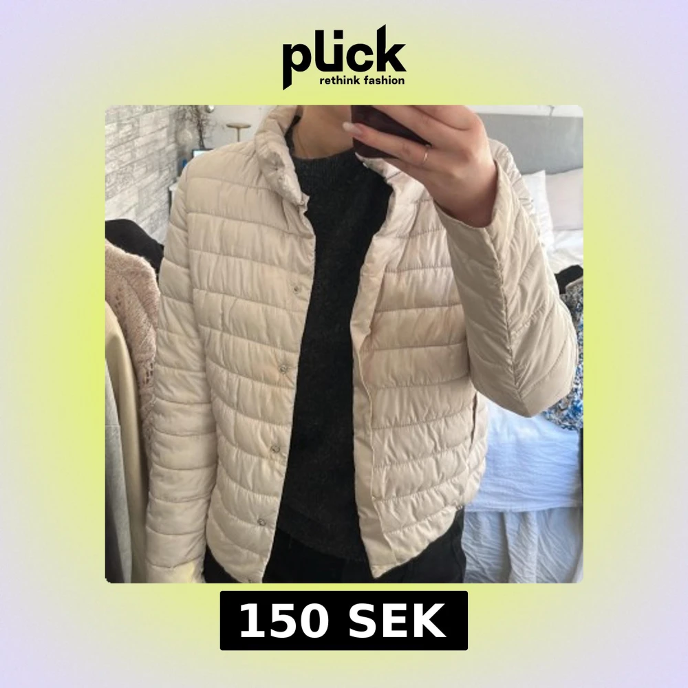 Säljer en snygg beige dunjacka med knappar. Jackan har en quiltad design och är perfekt för våren. Den har en normal passform och långa ärmar. Perfekt för både höst och vår!💗