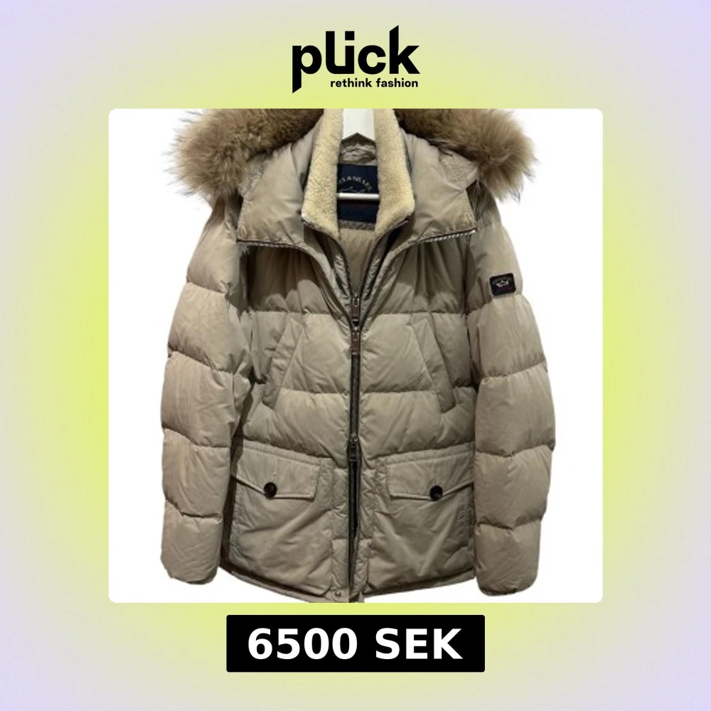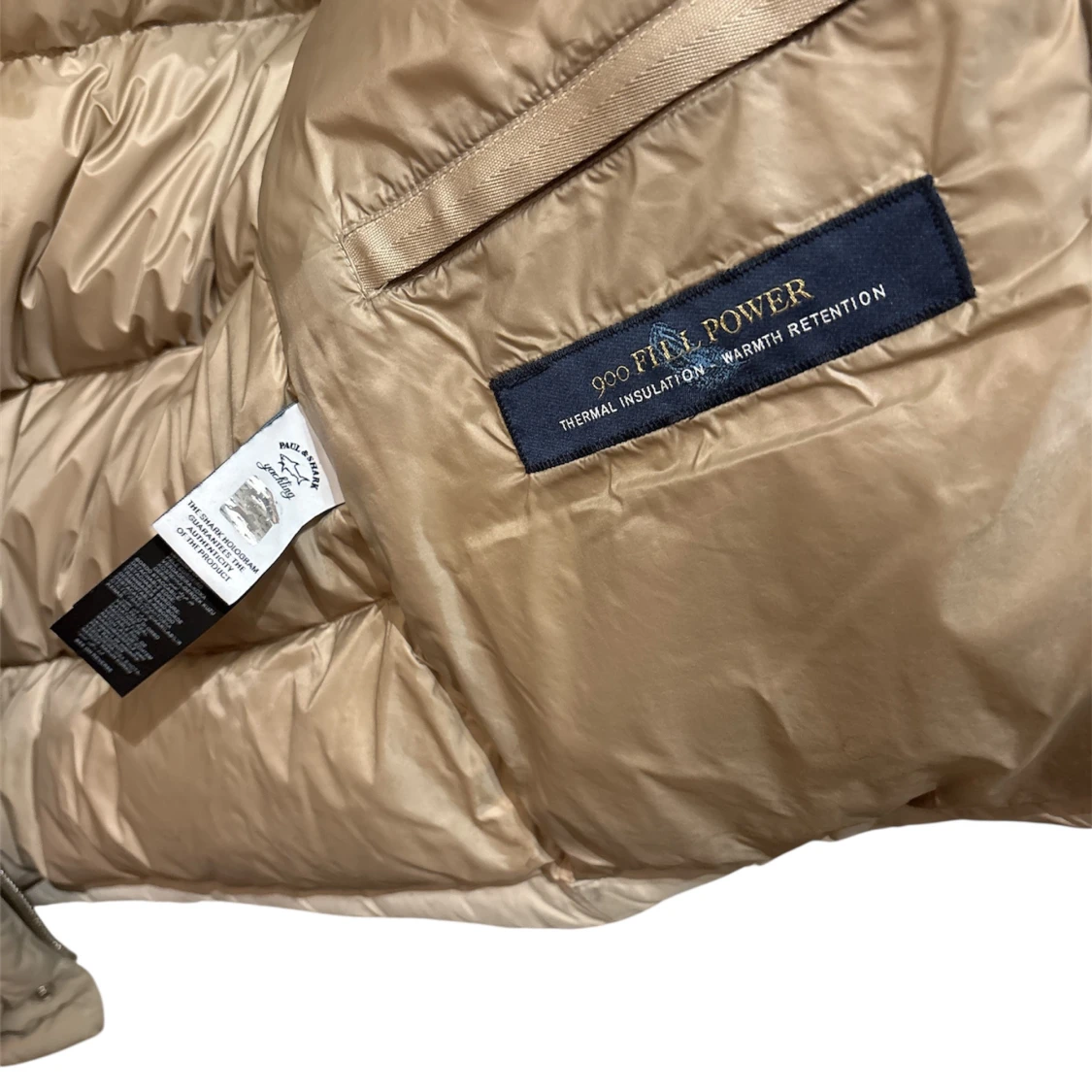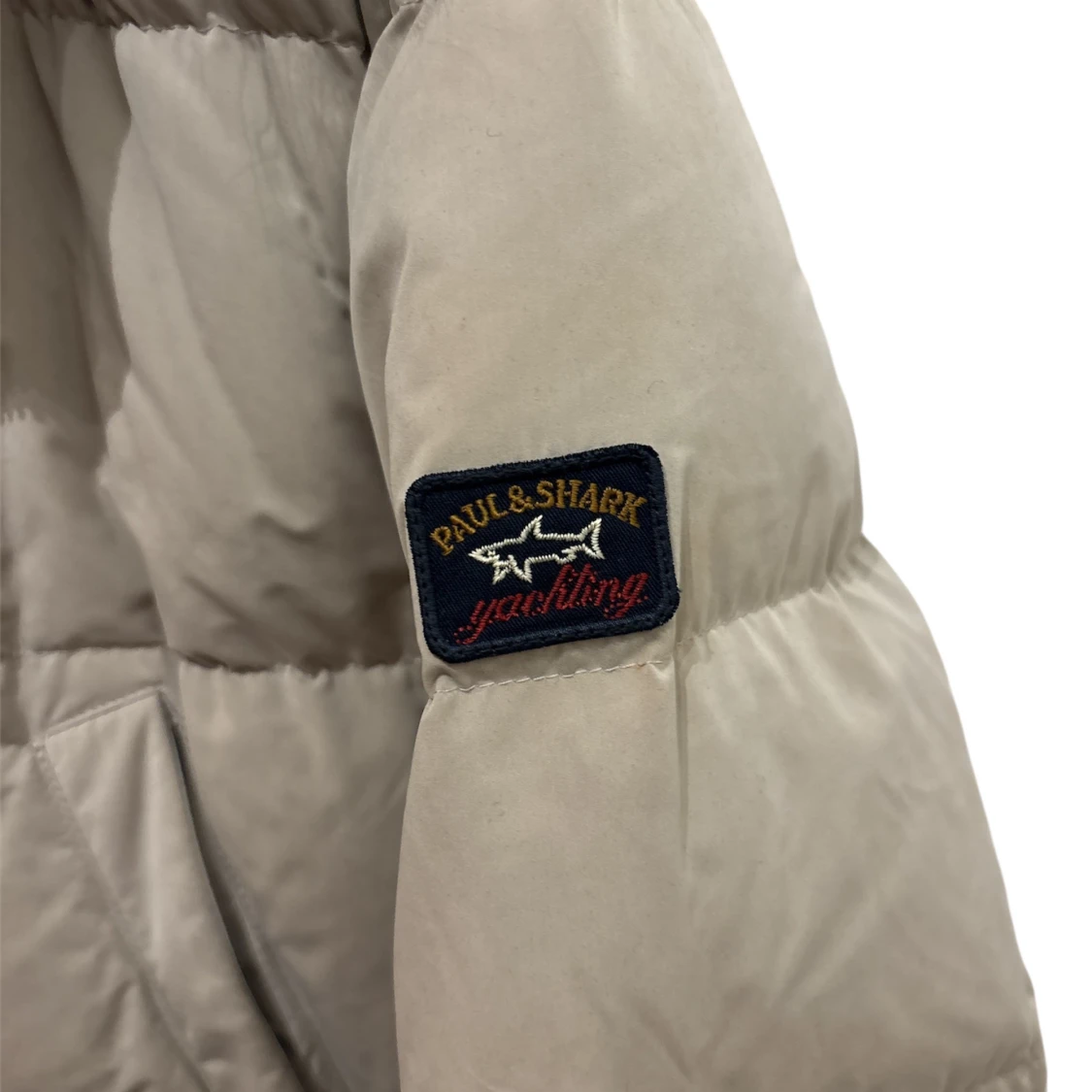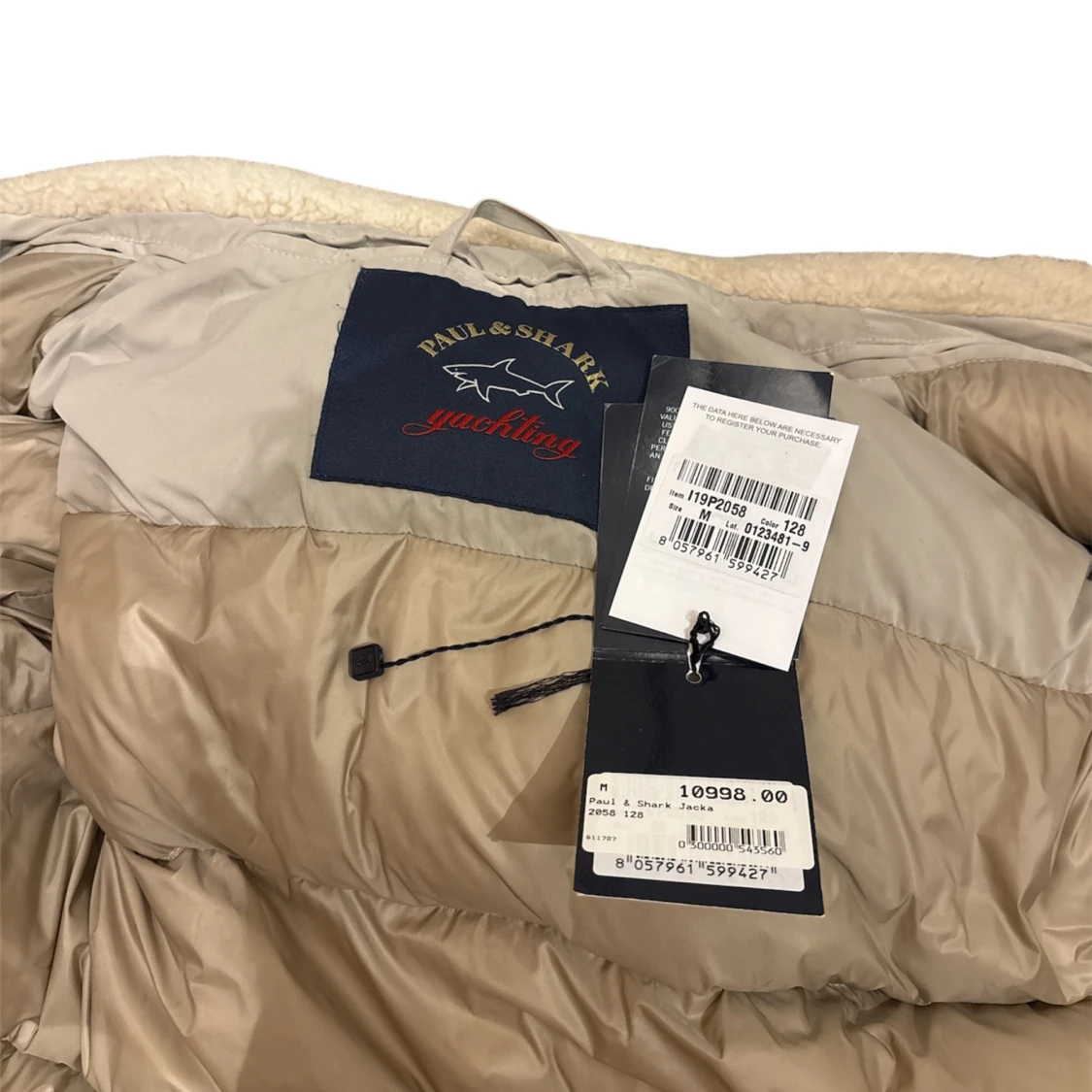 Snygg beige dunjacka från Paul & Shark med fluffig pälskant på huvan och broderad logga på ärmen. Jackan har dragkedja, stora fickor med knappar och en mysig krage i teddy. Perfekt för kalla dagar när du vill hålla stilen. Inköpt på NK i Stockholm för 10998kr. Pälsen går att ta av samt innervästen.
