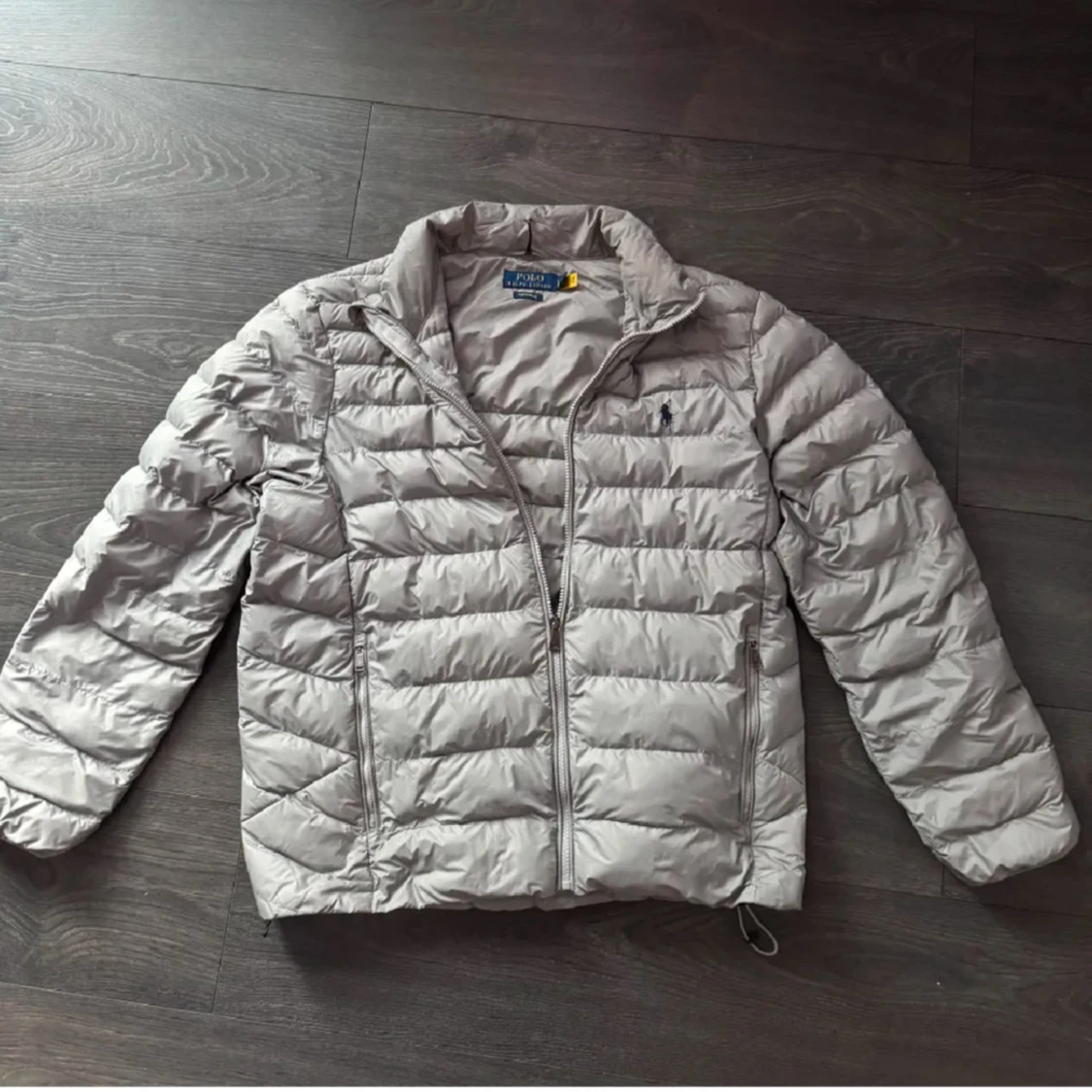Snygg och praktisk grå dunjacka från Polo Ralph Lauren. Jackan är lätt och packbar, perfekt för kyliga dagar. Den har en dragkedja framtill och långa ärmar. Klassisk design med diskret logga på bröstet.