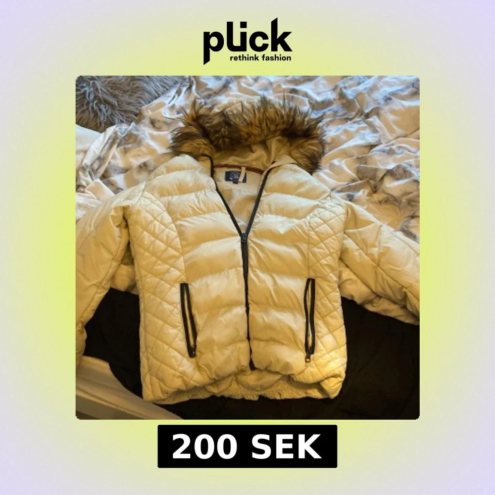 Säljer en snygg beige dunjacka från Polo Club med quiltad design och pälskrage. Jackan har en dragkedja framtill och praktiska fickor med dragkedjor. Perfekt för kyliga dagar!