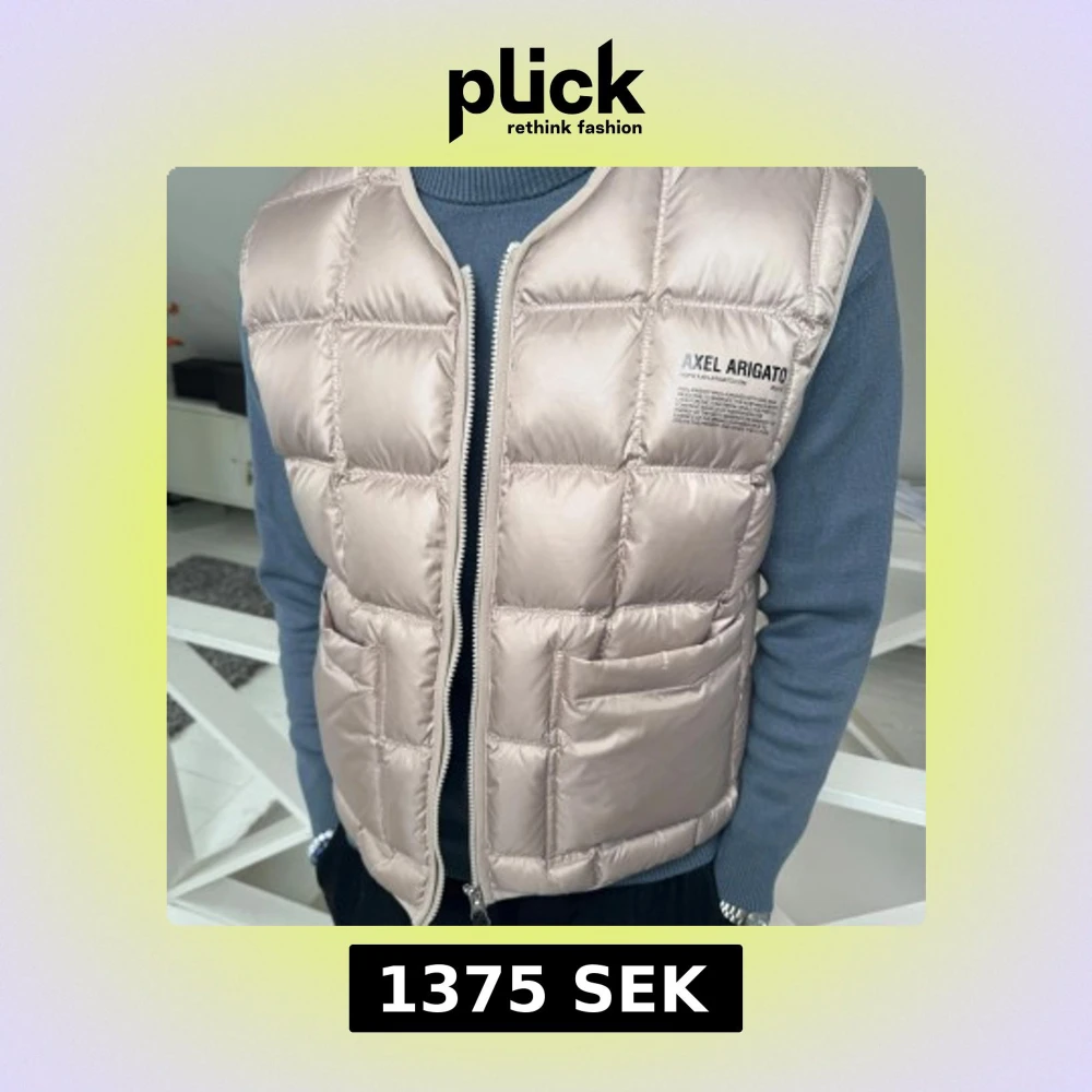 Stilren beige dunväst från Axel Arigato med quiltad design och dragkedja framtill. Perfekt för lager-på-lager och enkel att matcha med olika outfits. Storlek XS men väldigt stor i storlek( mer som S/M)