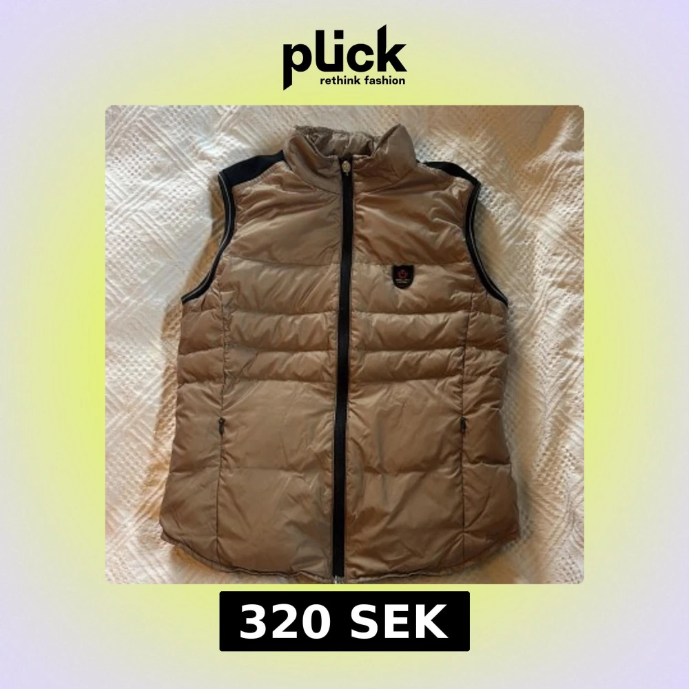 Snygg beige dunväst från Cavalleria Toscana med svart detaljer vid axlar och dragkedja. Västen har ståkrage, två fickor med dragkedja och ett broderat märke på bröstet. Storlek S, men liten i storleken, skulle säga XS.
