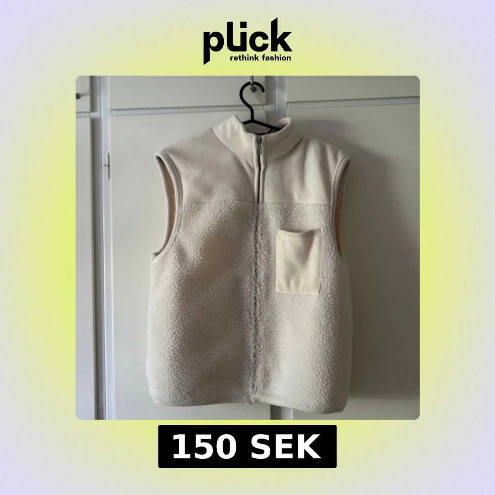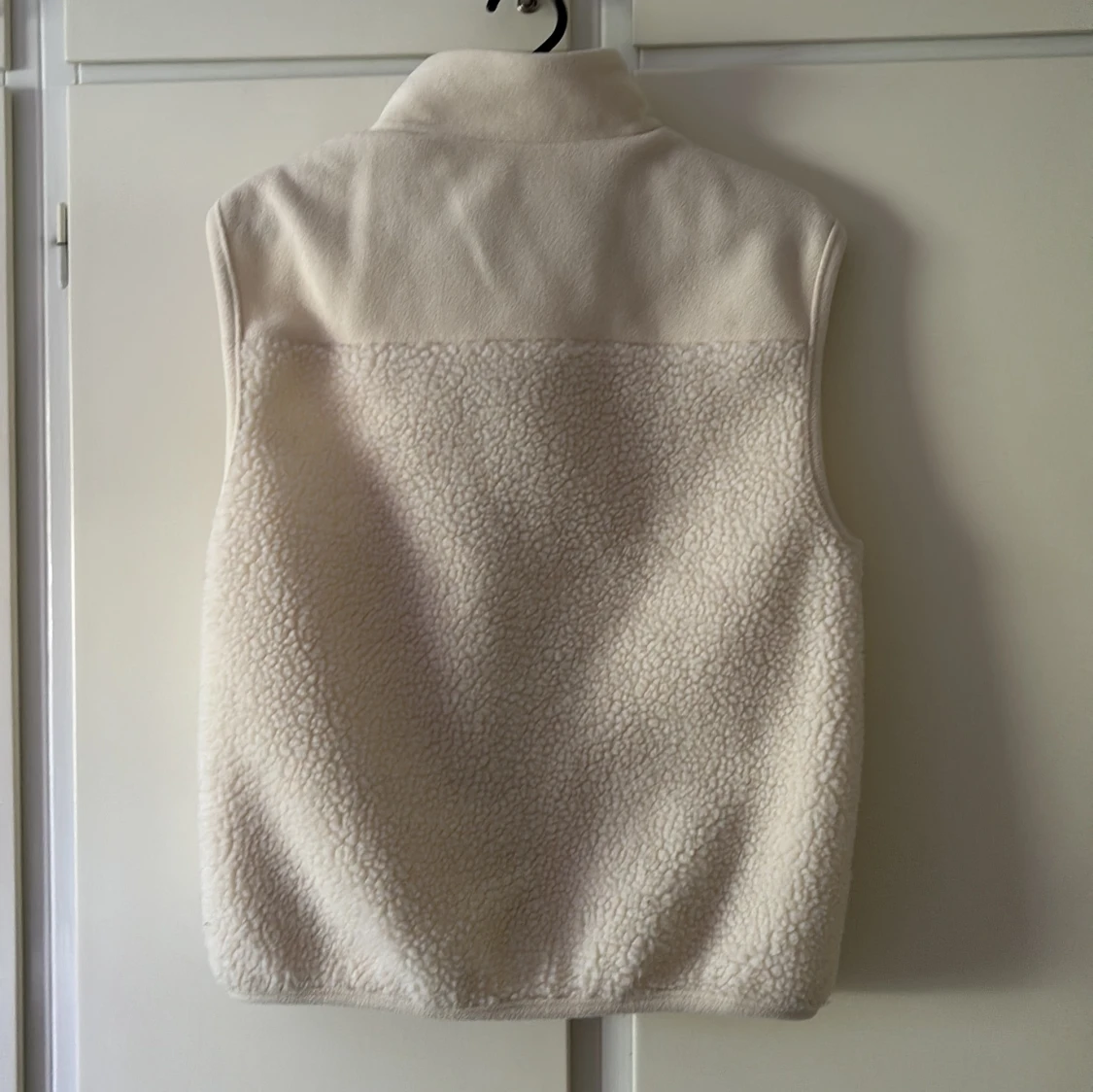 Mysig beige fleeceväst med hög krage. Västen har en enkel bröstficka och är tillverkad i mjukt teddyfleece-material. Perfekt lager-på-lager-plagg för kyliga dagar. Använd 1 gång och i väldigt fint skick. Nypris 500