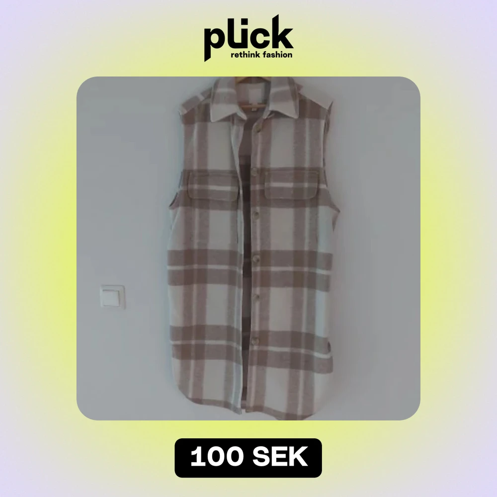 Säljer en superfin rutig väst från H&M i storlek M. Västen har en beige och vit färgkombination med stora rutor och knappar framtill. Den har en klassisk krage och två stora fickor på bröstet. Perfekt för höst och vår!