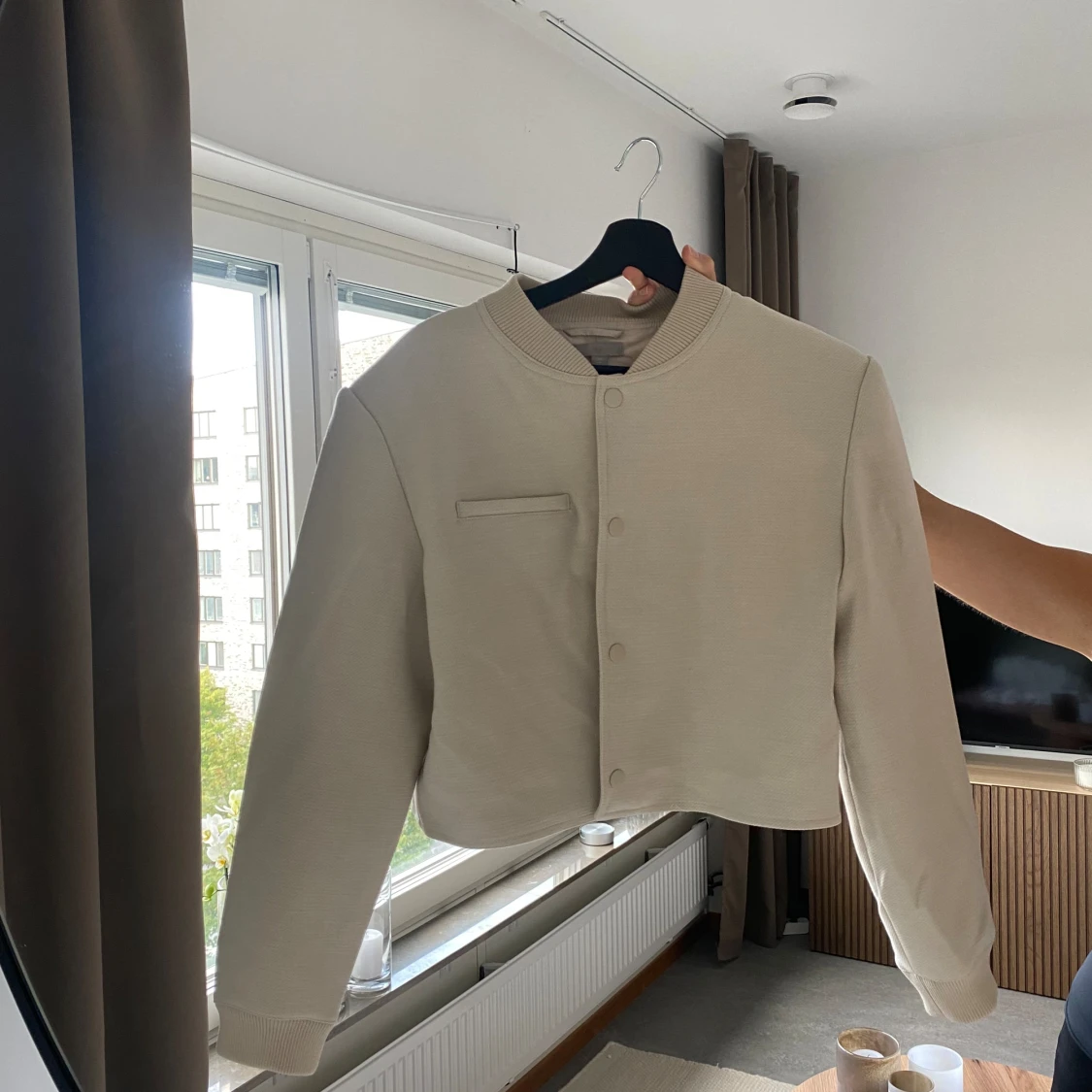 Beige jacka från H&M. Aldrig använd men råkade dra bort lappen så kan inte lämna tillbaks. Köpte L för oversized, jag brukar ha xs-s!