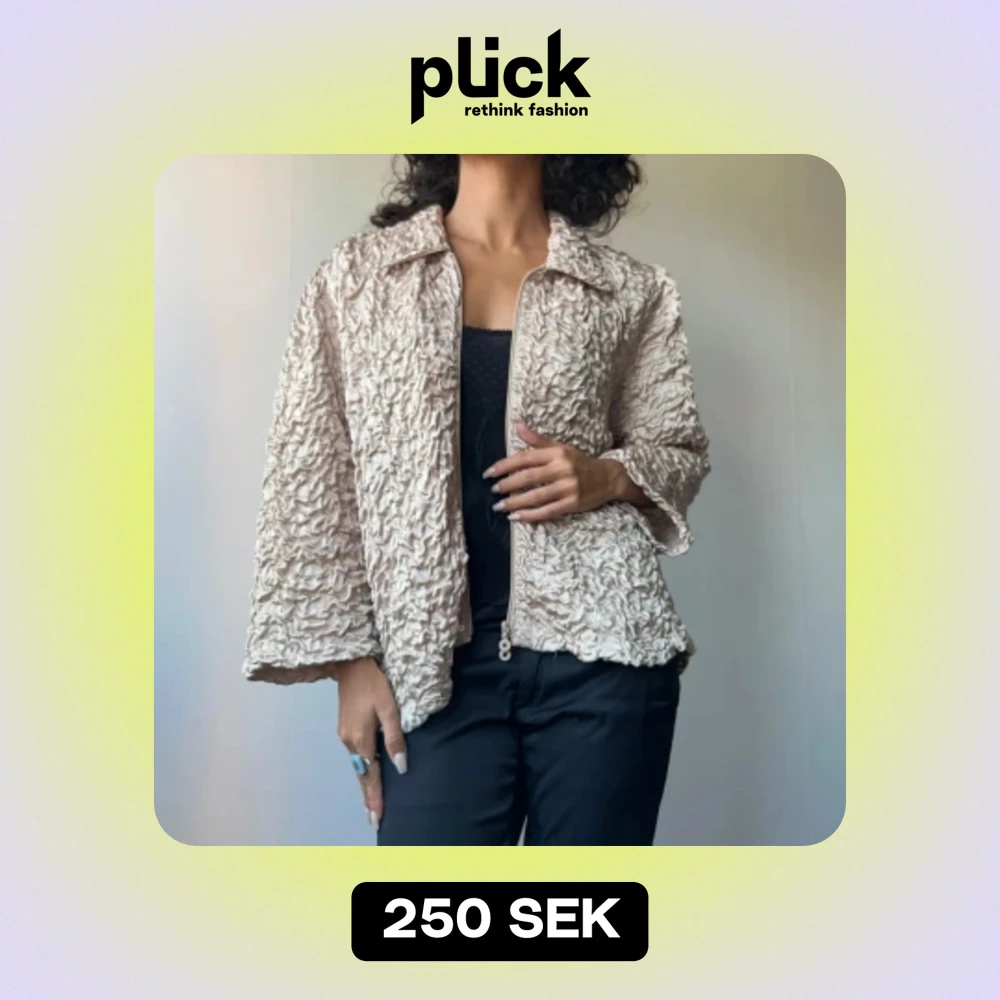 •Unique thin beige/champagne zip jacket with smocked/ruched texture • SIZE - EU 46 (Fits S-L) • BRAND - Joseph Ribkoff • MATERIAL - 100% acetate