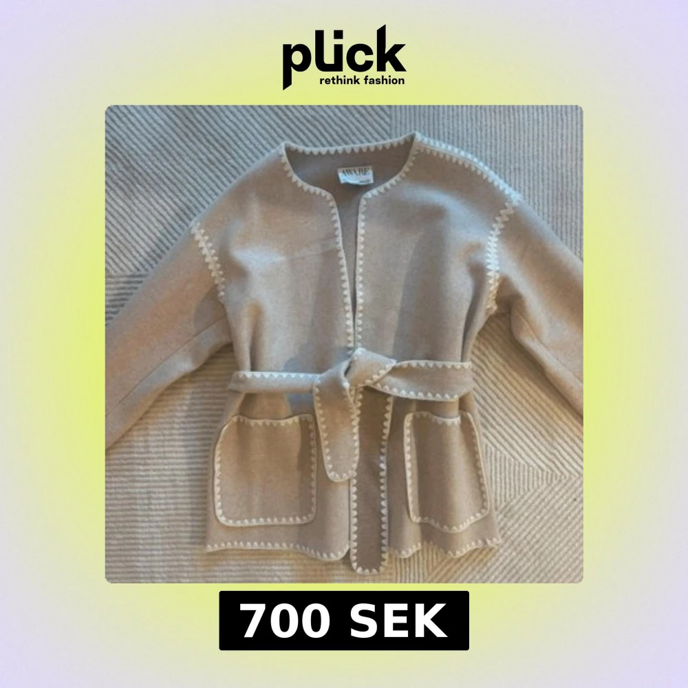 Superfin beige kappa från Aware med knytbälte i midjan och stora fickor fram. Jackan har dekorativa vita sömmar längs kanterna, enkel och stilren design som passar till allt. 💕💕
