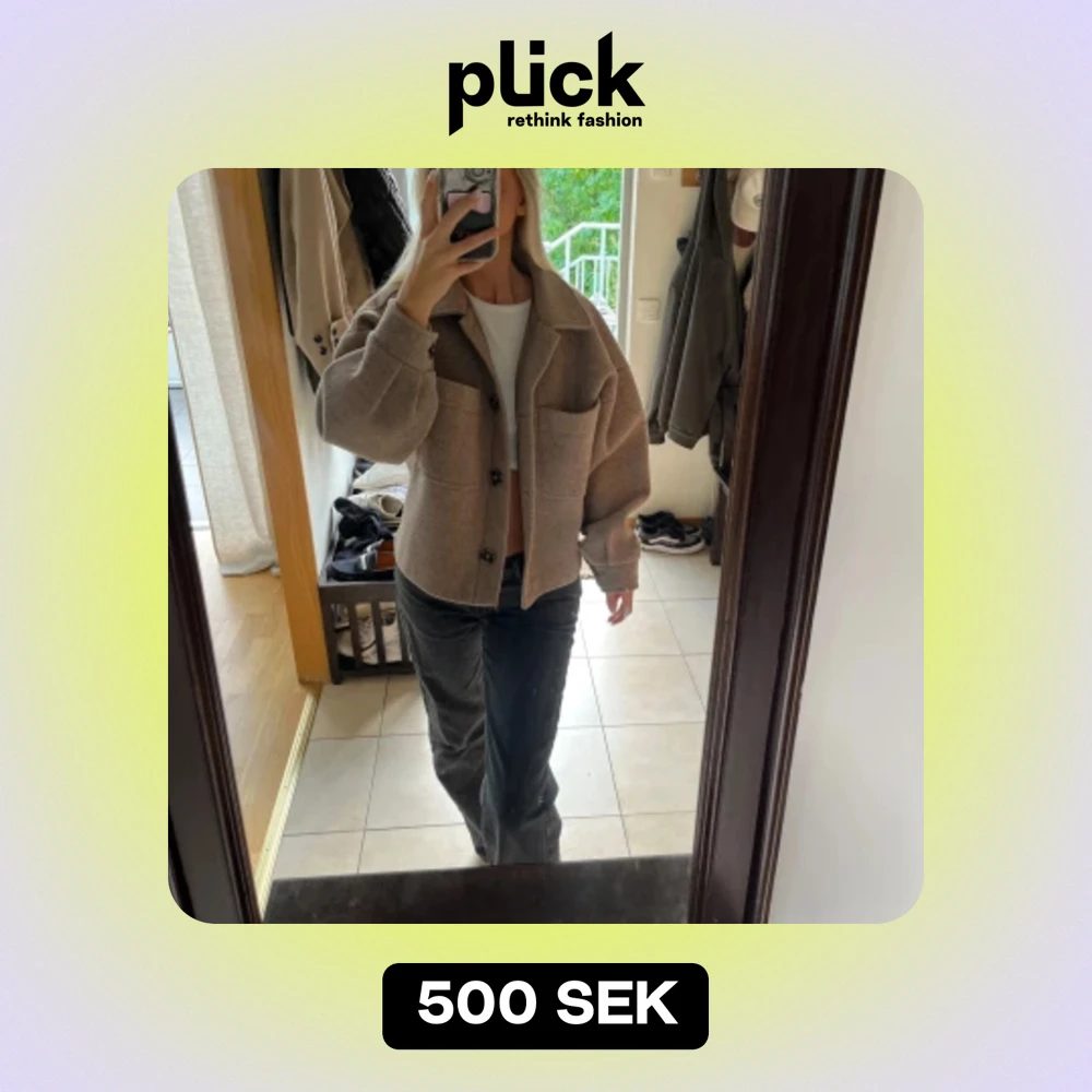 Säljer en snygg beige jacka från NA-KD. Den har en oversized passform med stora fickor framtill och knappar. Perfekt för höst och vår!