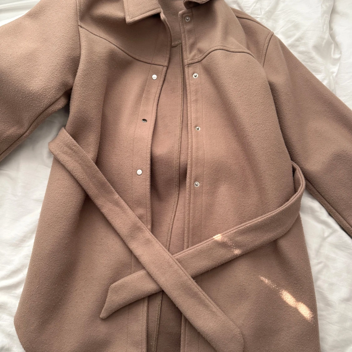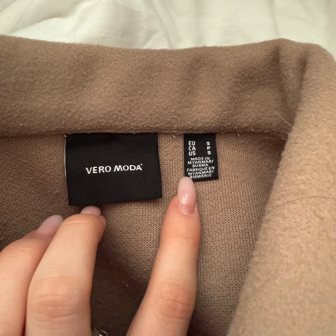Snygg beige jacka från Vero Moda med knappar och bälte i midjan. Perfekt för höst och vår. Jackan har långa ärmar och en klassisk krage.