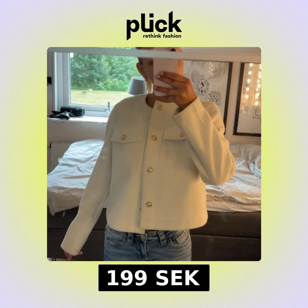 Snygg beige jacka från Zara i ullmix med raka axlar och guldiga knappar framtill. Jackan har två bröstfickor med lock och en stilren, boxig passform. Perfekt för dig som gillar en clean och chic look.
