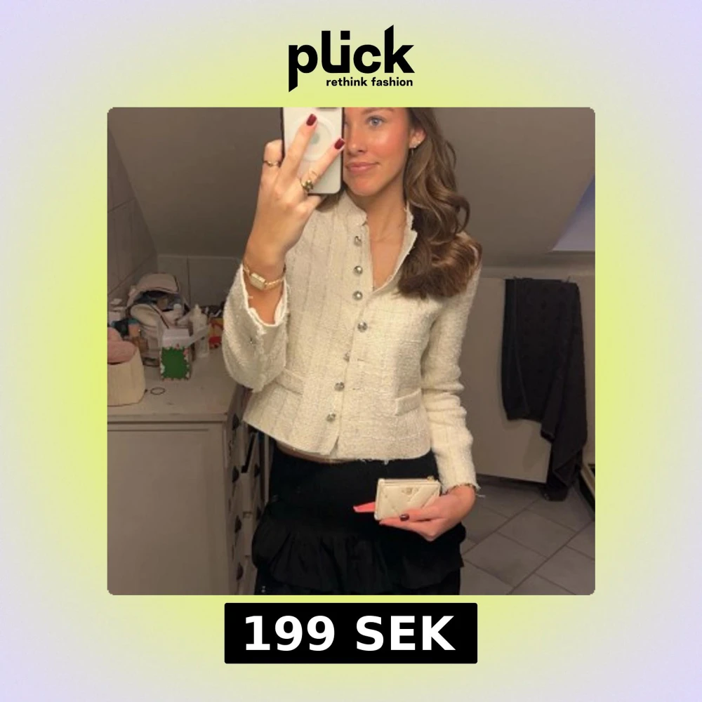 Snygg beige tweedjacka från Zara med silvriga knappar och råa kanter. Jackan har en croppad passform, rund halsringning och är helfodrad. Använd några få gånger så fortfarende i mycket bra skick. Finns ej längre att köpa. 🤍