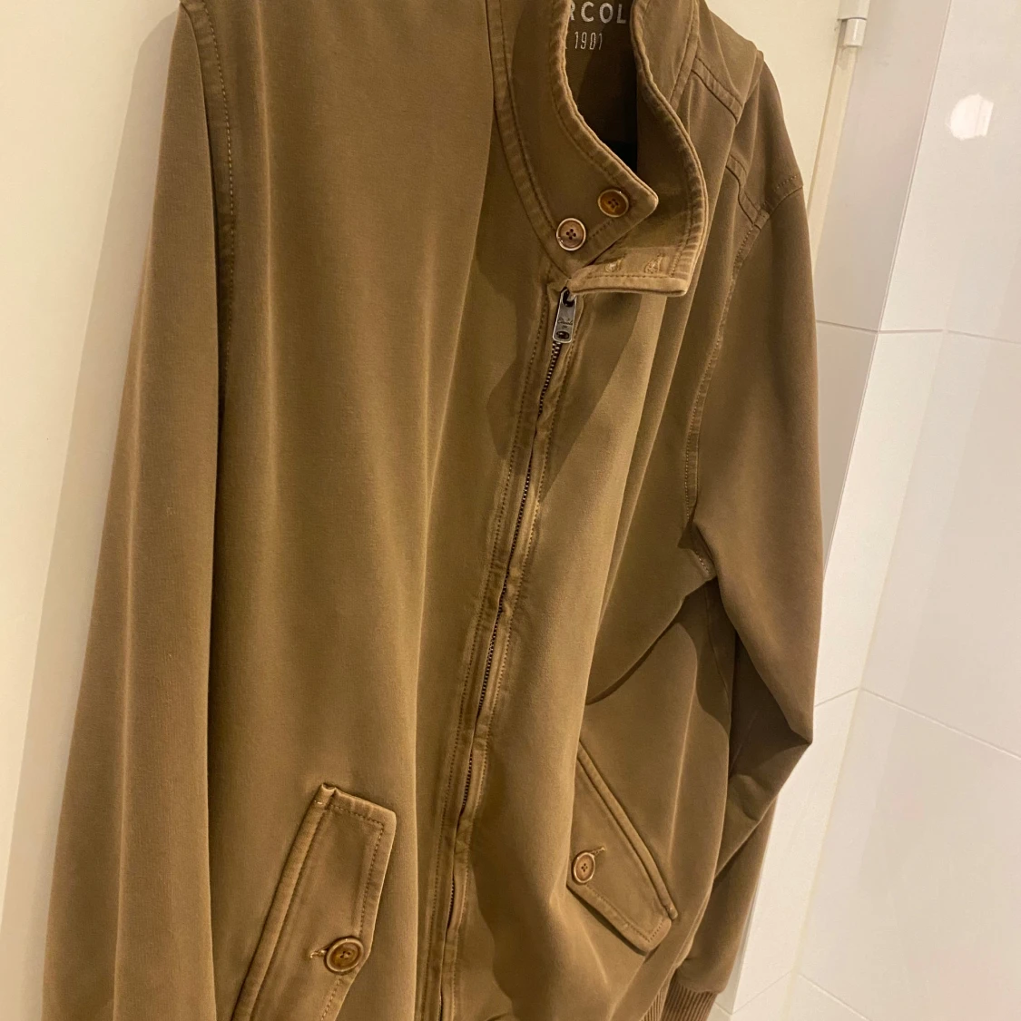Säljer en stilren beige jacka med dragkedja och knappar. Jackan har långa ärmar och ribbade muddar vid ärmslut och nederkant. Perfekt för en avslappnad look. Nypris 3500kr. Storleken är Xxl men passar som L