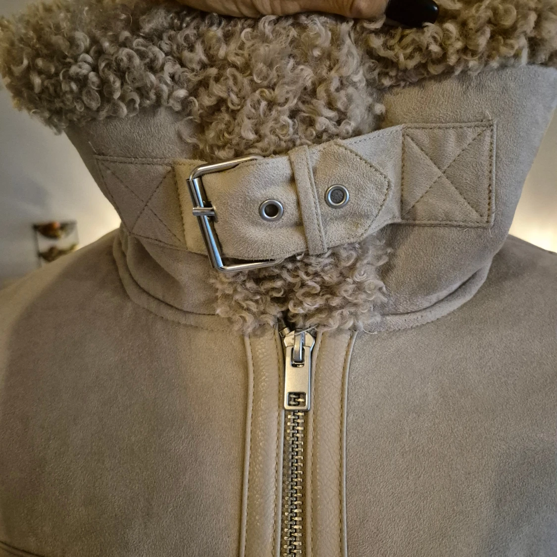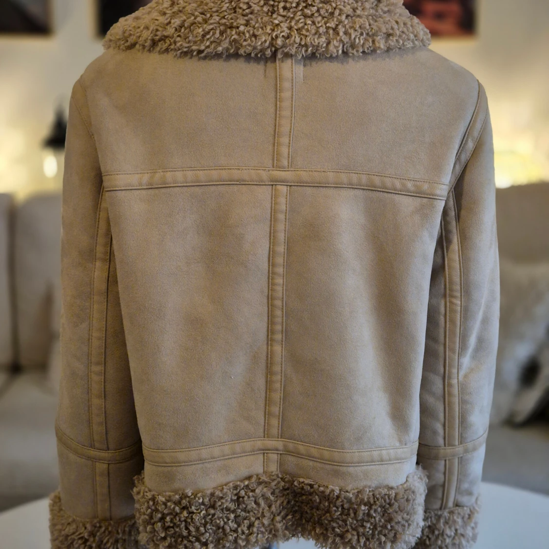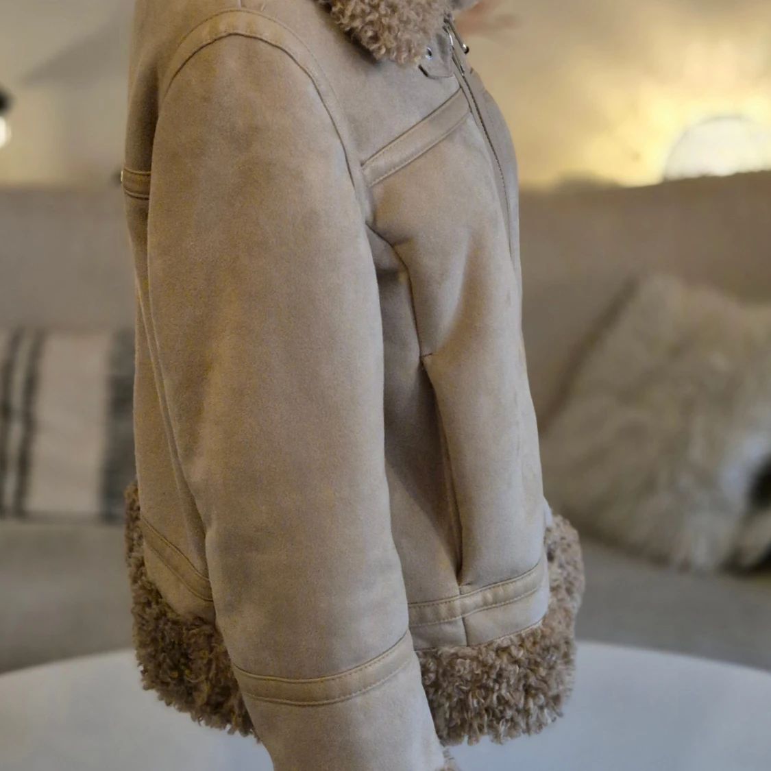 Beige piléfodrad jacka med rejäl dragkedja och möjlighet att spänna kragen högt runt halsen. * Nypris: 999 kr * Hela jackan är piléfodrad. Samma material som runt ärmslut, krage etc. * Storlek M. Passar mig som bär 38-40. * Två sidofickor och två innerfickor. * Mycket bra skick. Hittar inga fel. * Bröst: ca 53 cm mätt armhåla till armhåla * Höftmått: ca 57 cm. * Axel till ryggslut: ca 60 cm * Innerärm: ca 42 cm. Djur och rökfritt hem. Se bilder och förstora då de ingår i beskrivningen. Se g
