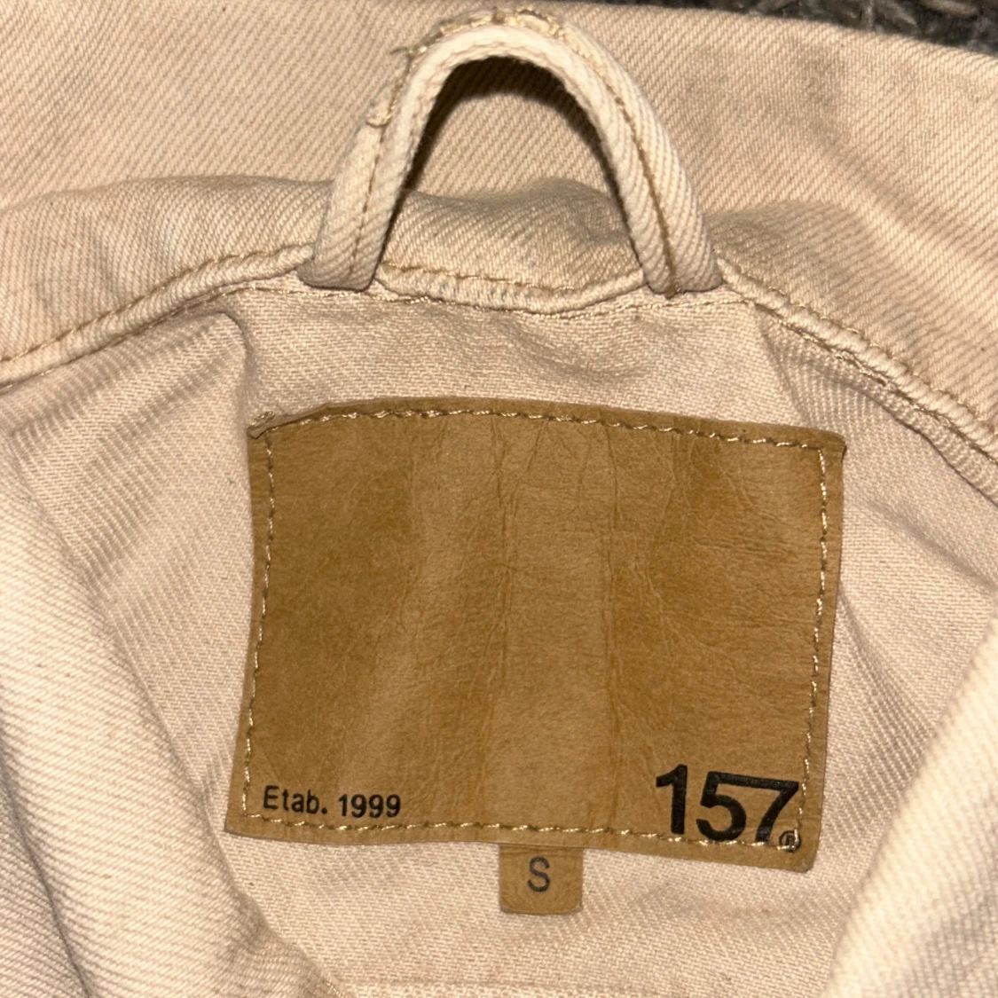 Säljer en snygg beige jeansjacka från lager157 i storlek S.