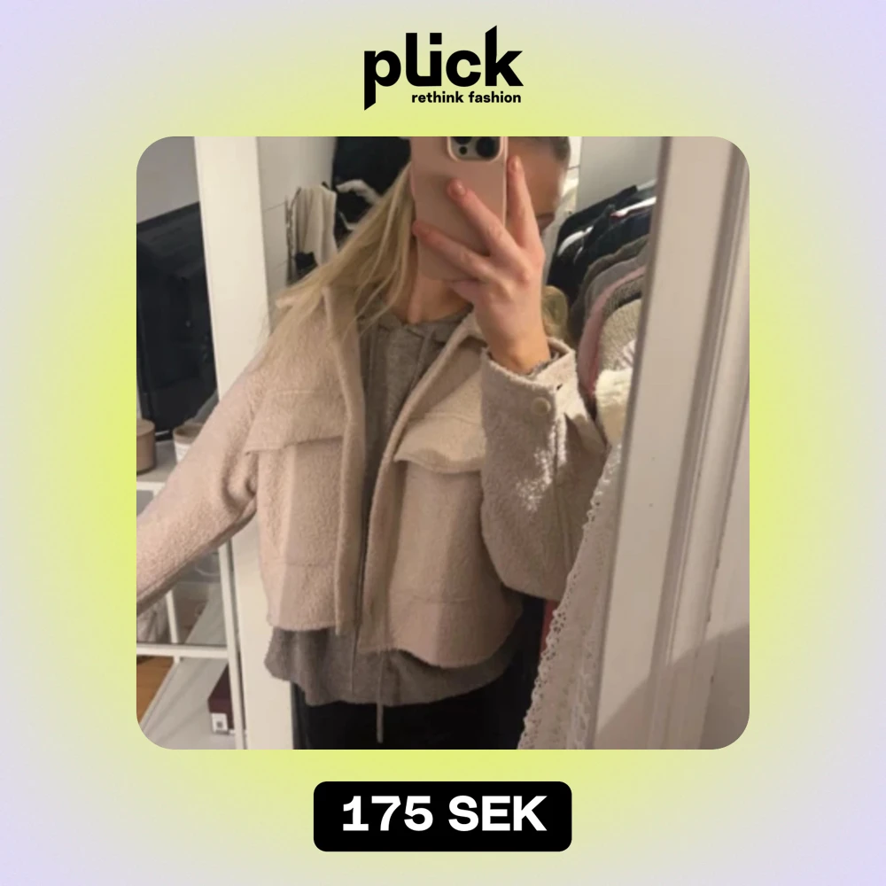 Jättefin kort kappa i beige ”teddy” material. I storlek S från H&M. Tar frakt.