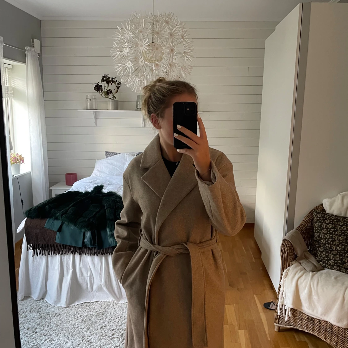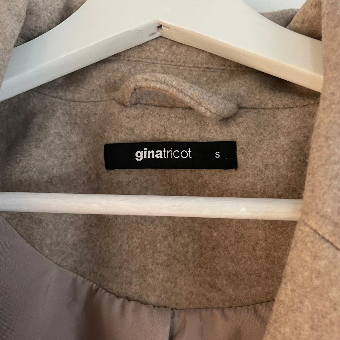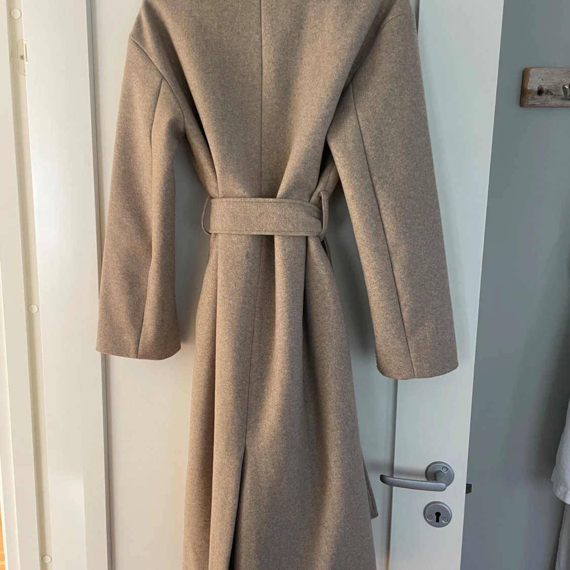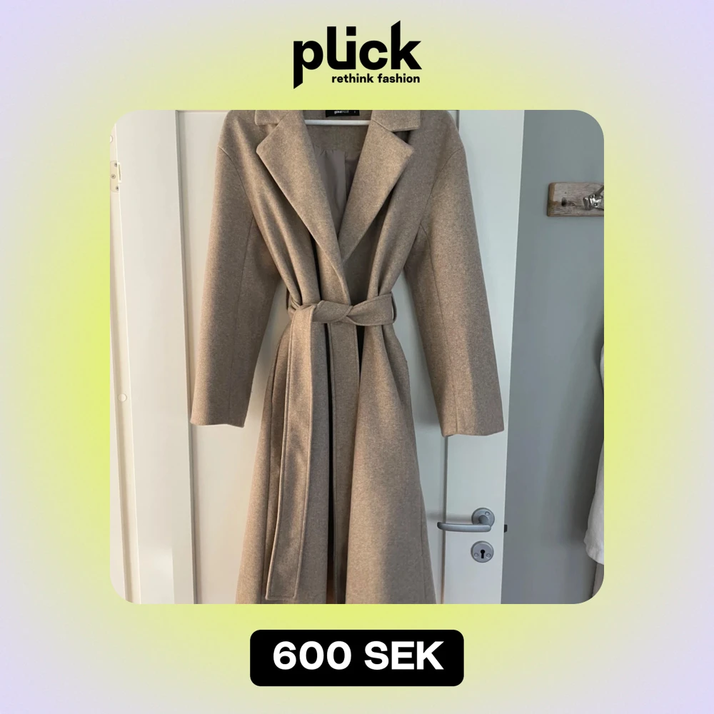 Jag säljer nu en jättefin beige kappa som är som ny då den kommit till användning, max två gånger! Den är i ett fint skick och inga defekter förekommer. Fint skuren och med slits på baksidan samt fickor vilket jag tycker är snyggt!