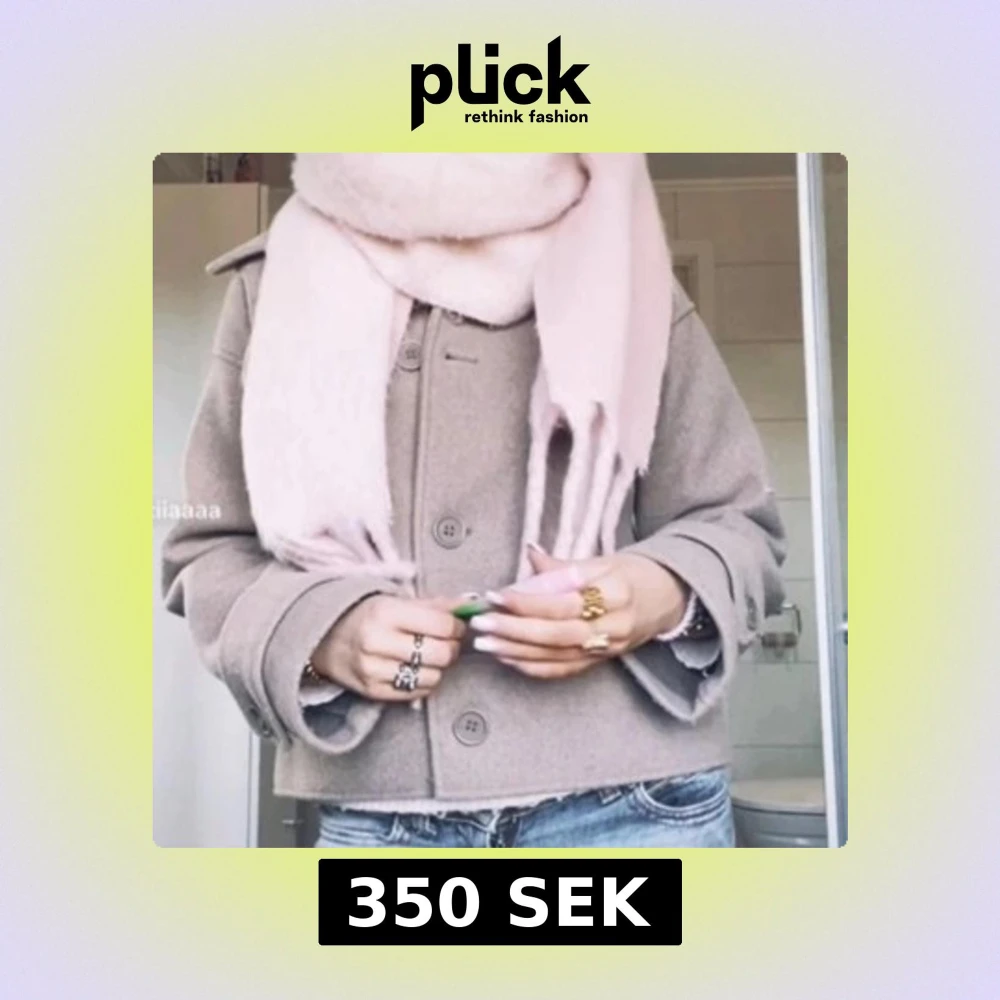 Snygg beige skepparkavaj med stora knappar och bred krage. Jackan är croppad och har en boxig passform som ger en cool vibe. Tillverkad i ullblandning, perfekt för höst och vinter. Styla med jeans och chunky smycken för en trendig look.
