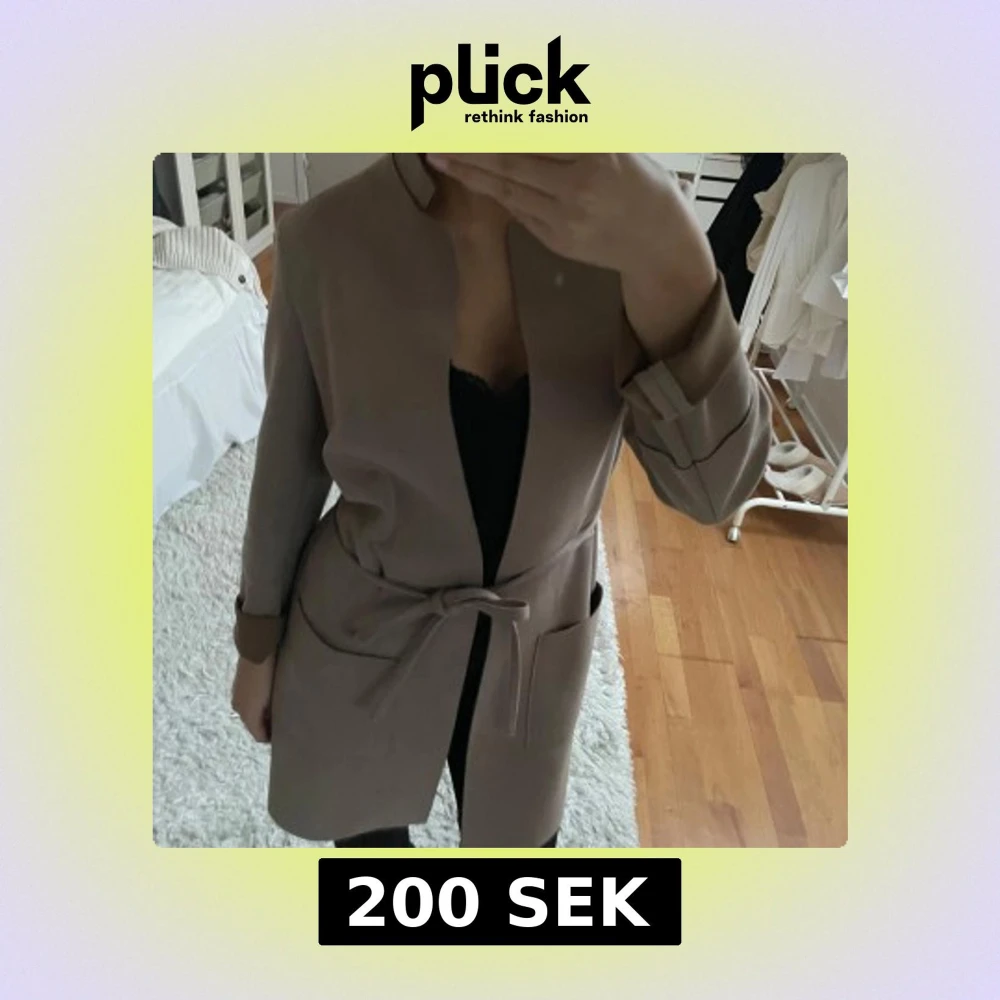 Elegant beige kappa från H&M med knytband i midjan och långa ärmar. Perfekt för höst och vår, med en stilren design utan krage.