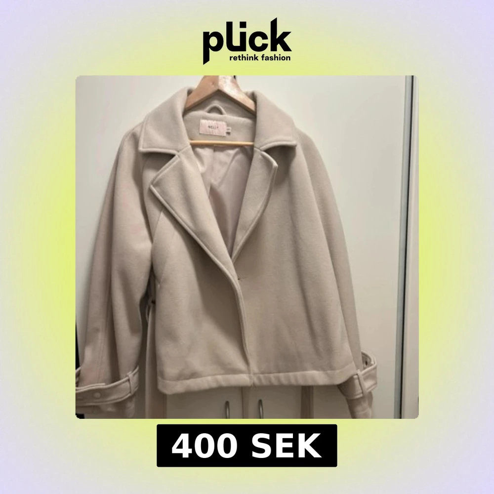 Stilren beige kappa från Nelly med bred krage och knytskärp i midjan. Jackan har snygga detaljer vid ärmsluten med knappar och är tillverkad i ett mjukt ull-liknande material. Helt ny, aldrig använd! . Storlek S/M. Jag är både storlek S och M, se andra bilden på hur den sitter. Nypris 699kr.