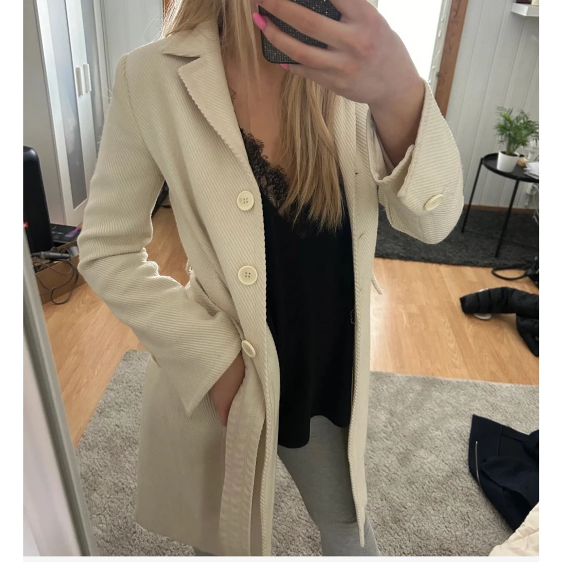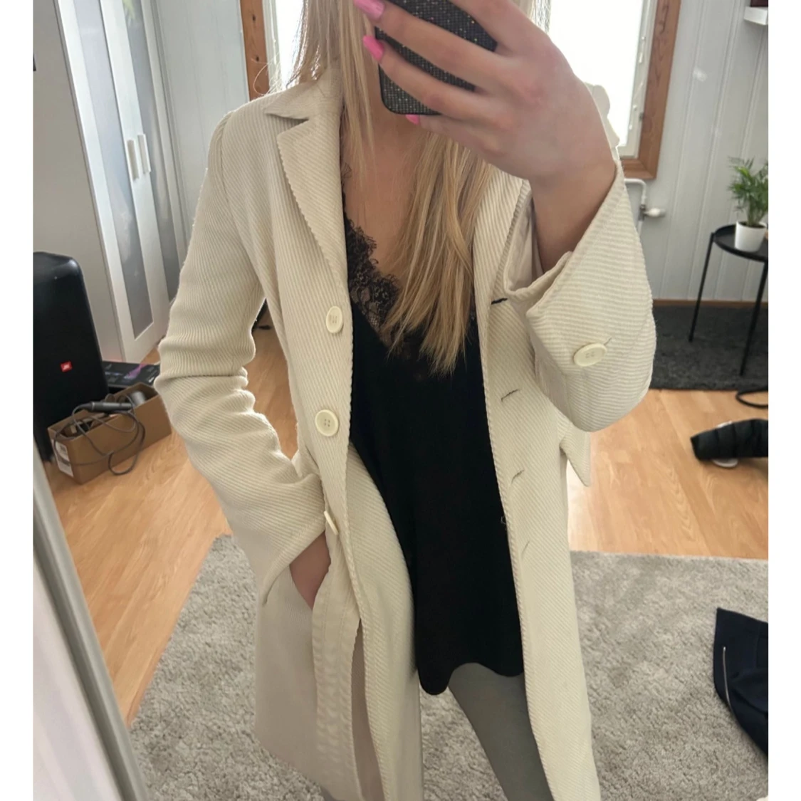 Elegant beige kappa med knappar framtill och klassisk krage. Perfekt för en stilren look. Långärmad design som passar bra till både vardag och festligare tillfällen.