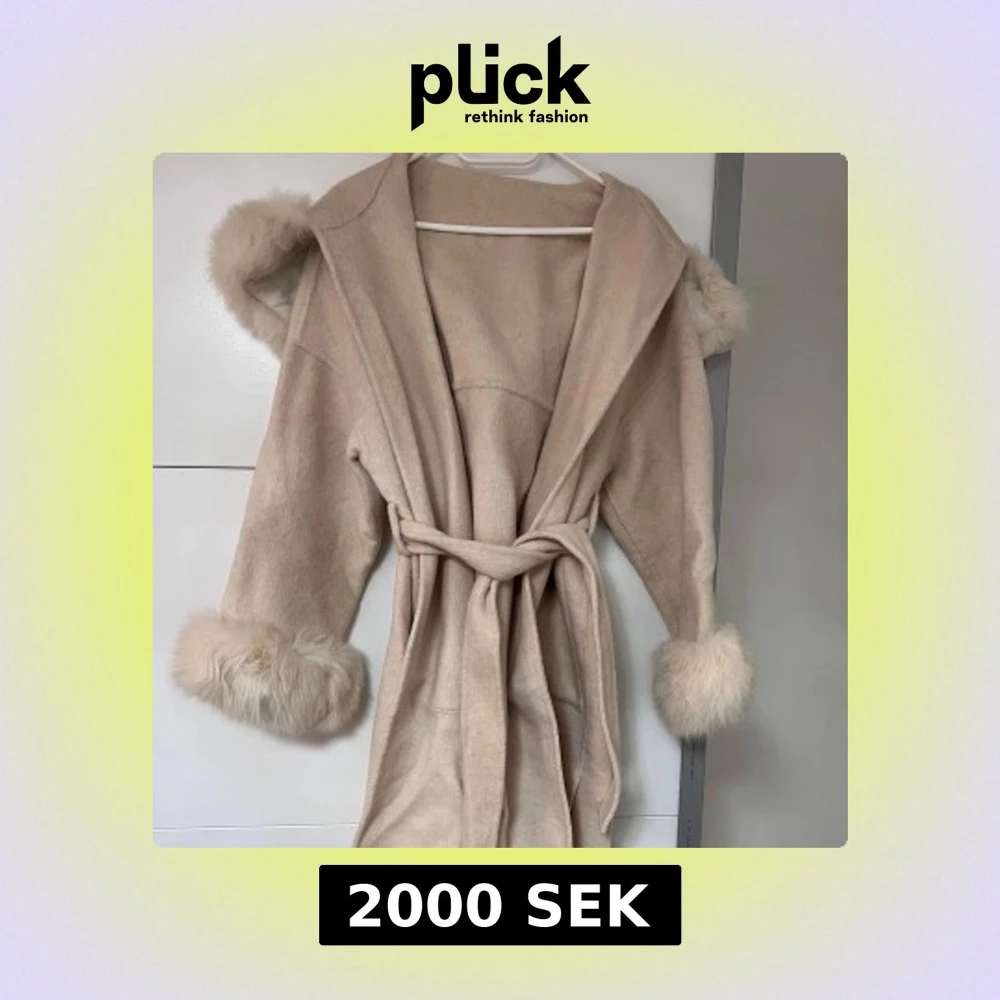 Säljer en elegant beige kappa med äkta päls på huva och ärmslut. Kappan har en knytning i midjan och är perfekt för kyligare dagar. Den har en mjuk och lyxig känsla, vilket gör den till ett stilrent val för höst och vinter. S/M