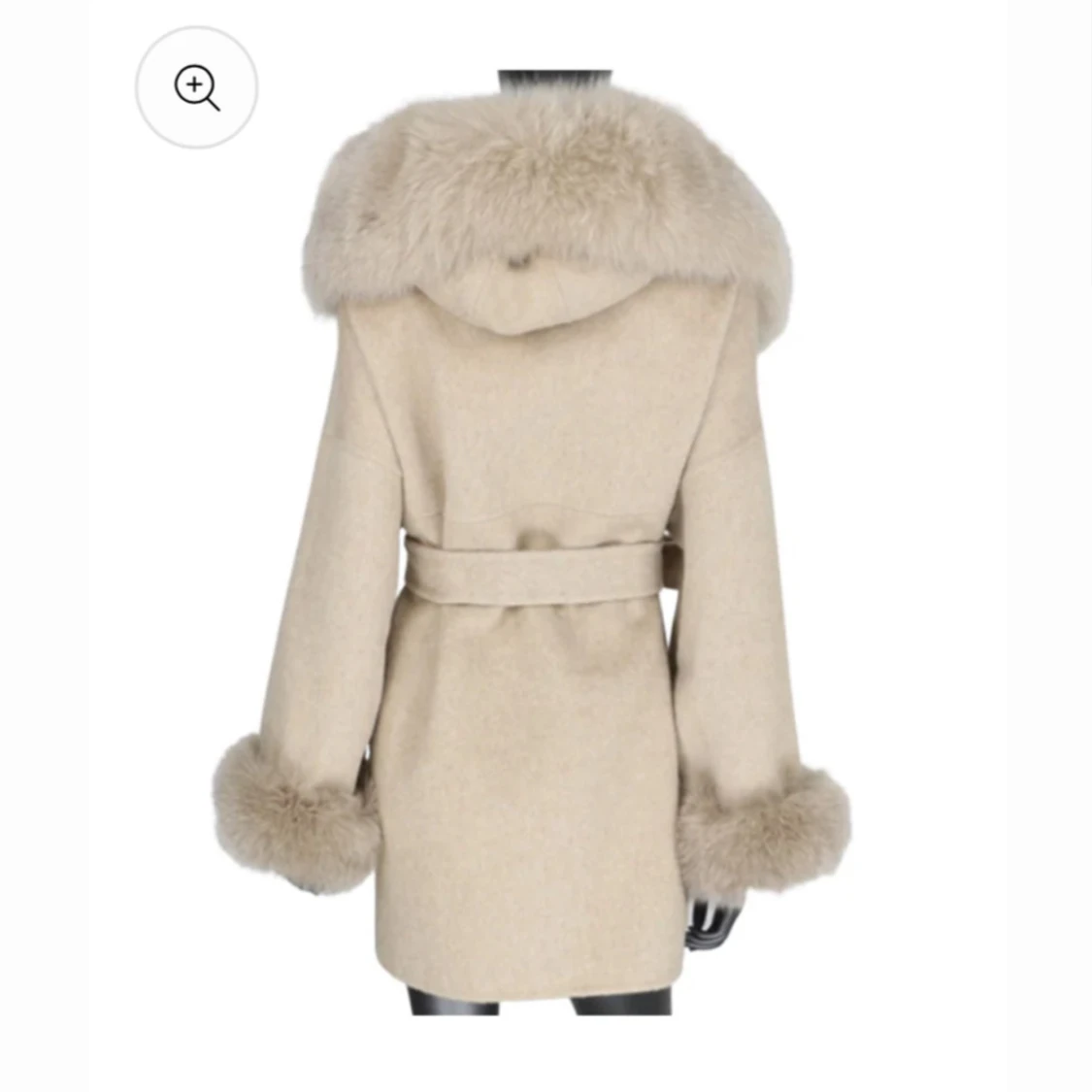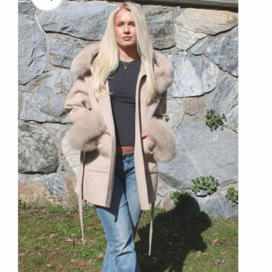 Snygg beige kappa med äkta päls detaljer. Medellång med stora fickor från Fur Stockholm! Endast använd en höst. Bra till höst/vår & funkar även under vintern. Storlek S. Köpt för 2400kr
