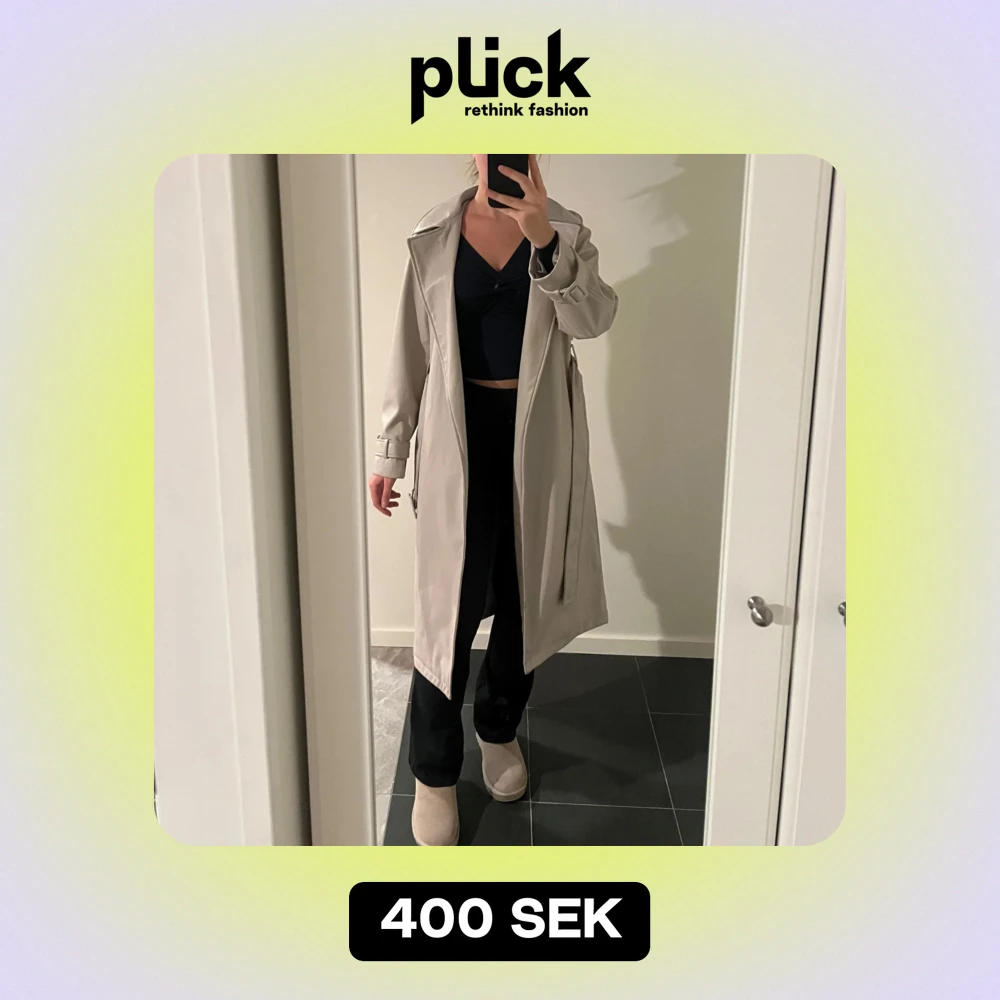 Säljer en snygg beige/grå skinn trenchcoat i mycket bra skick som är köpt från Stradivarius . Den har ett bälte i midjan och långa ärmar med justerbara spännen. Perfekt för höst och vår! Passar till både vardag och fest. Storlek dam xs.