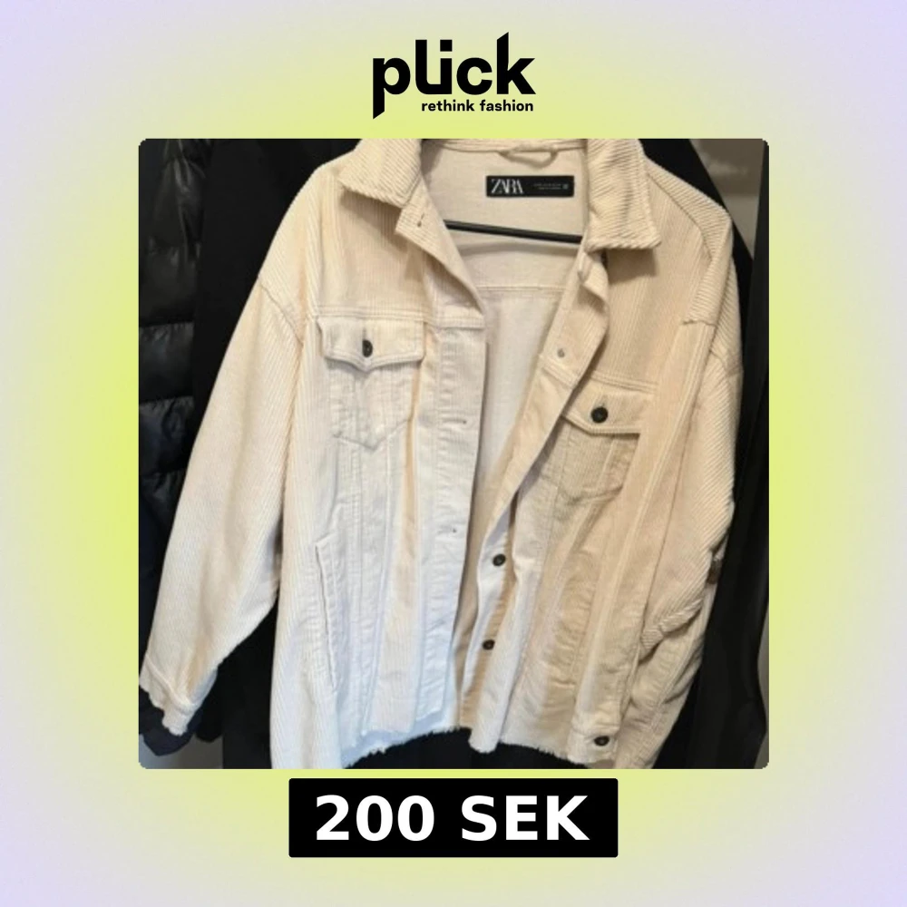 Snygg beige manchesterjacka från Zara med klassisk krage och knäppning framtill. Jackan har två bröstfickor med lock och knappar samt raka sidfickor. Perfekt oversized passform och coola detaljer i manchestertyg.