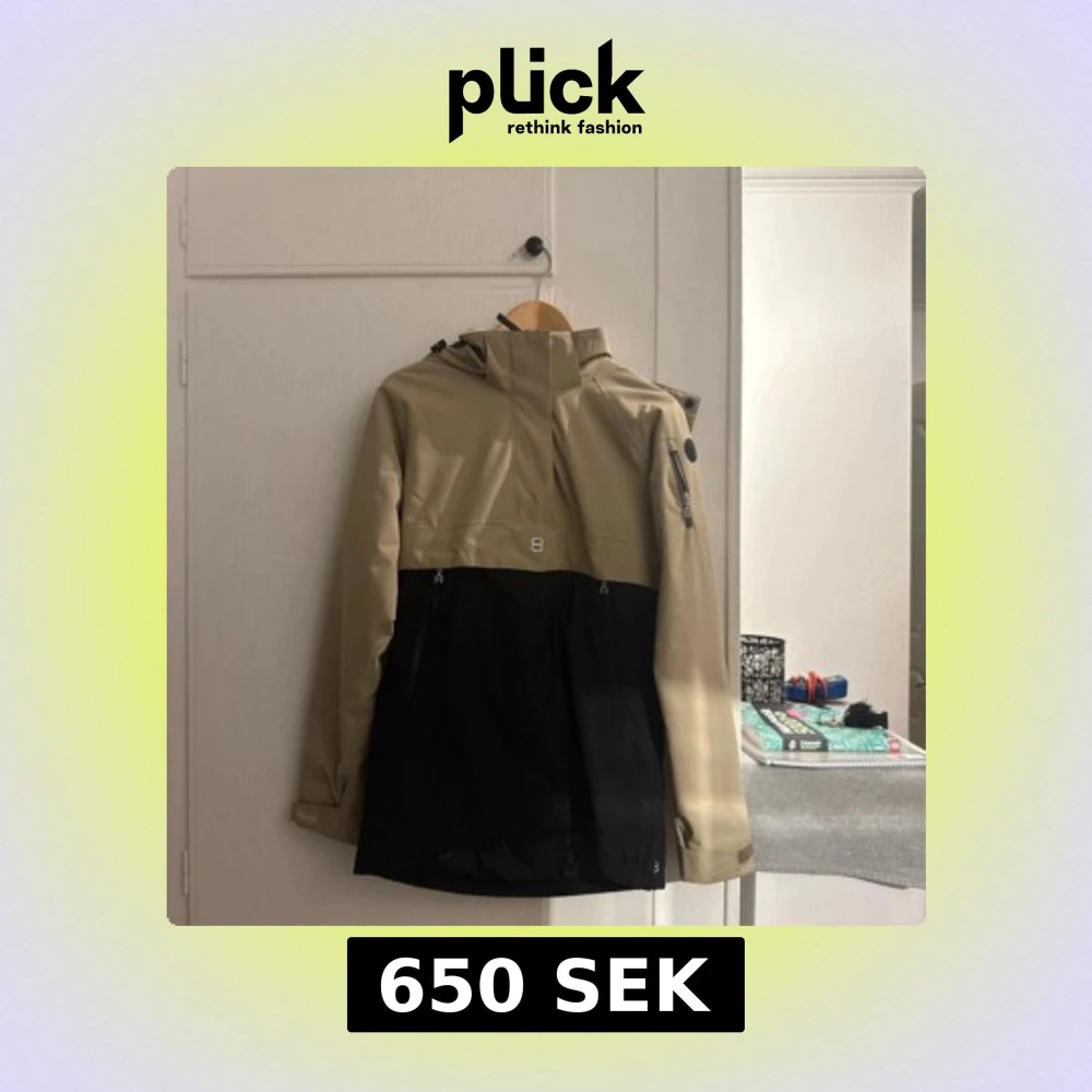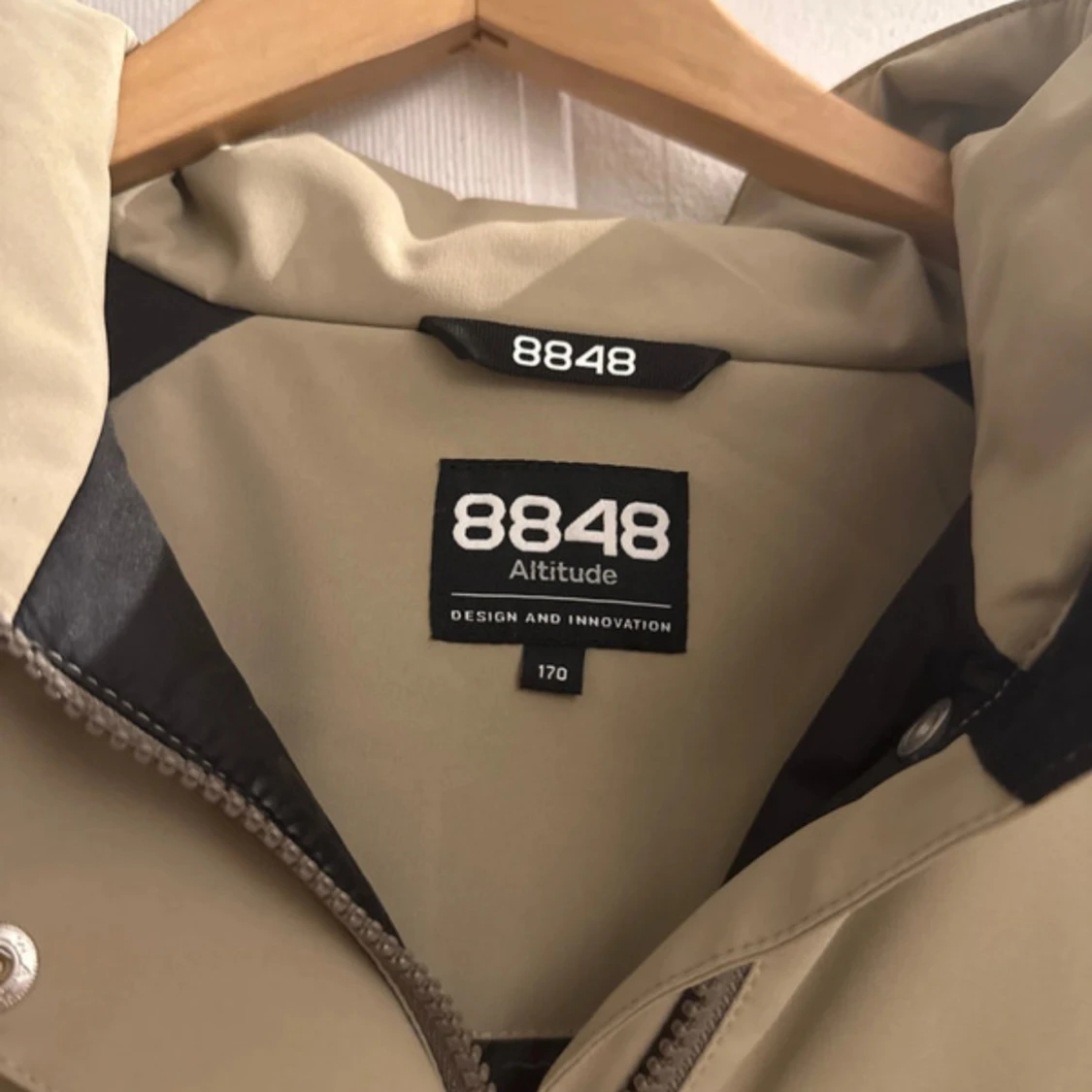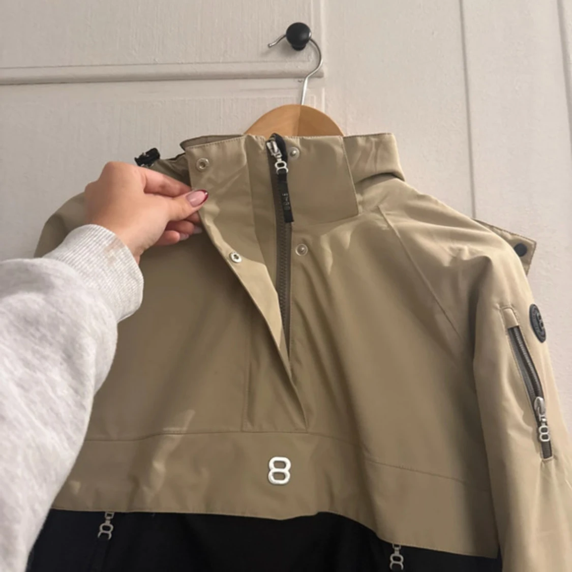 Snygg beige och svart skidjacka från 8848 Altitude med huva, dragkedjor och praktiska fickor. Jackan har en sportig look med logga på bröstet och är perfekt för dig som gillar stilren design. Materialet är slitstarkt och vattenavvisande syntet.