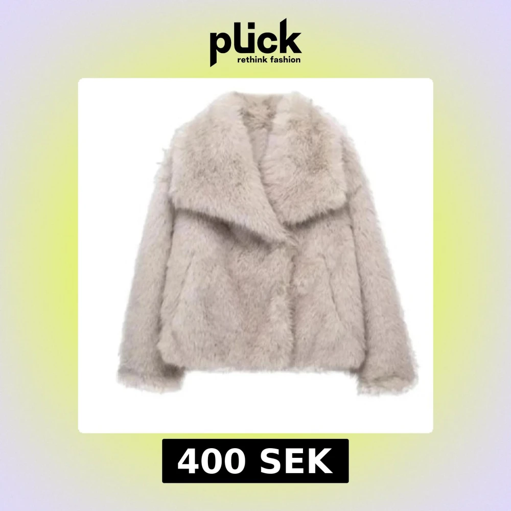 Säljer en fluffig och stilren beige pälsjacka med långa ärmar. Perfekt för vårväder mot sommaren. Jackan har en klassisk design med en mjuk och lyxig känsla.