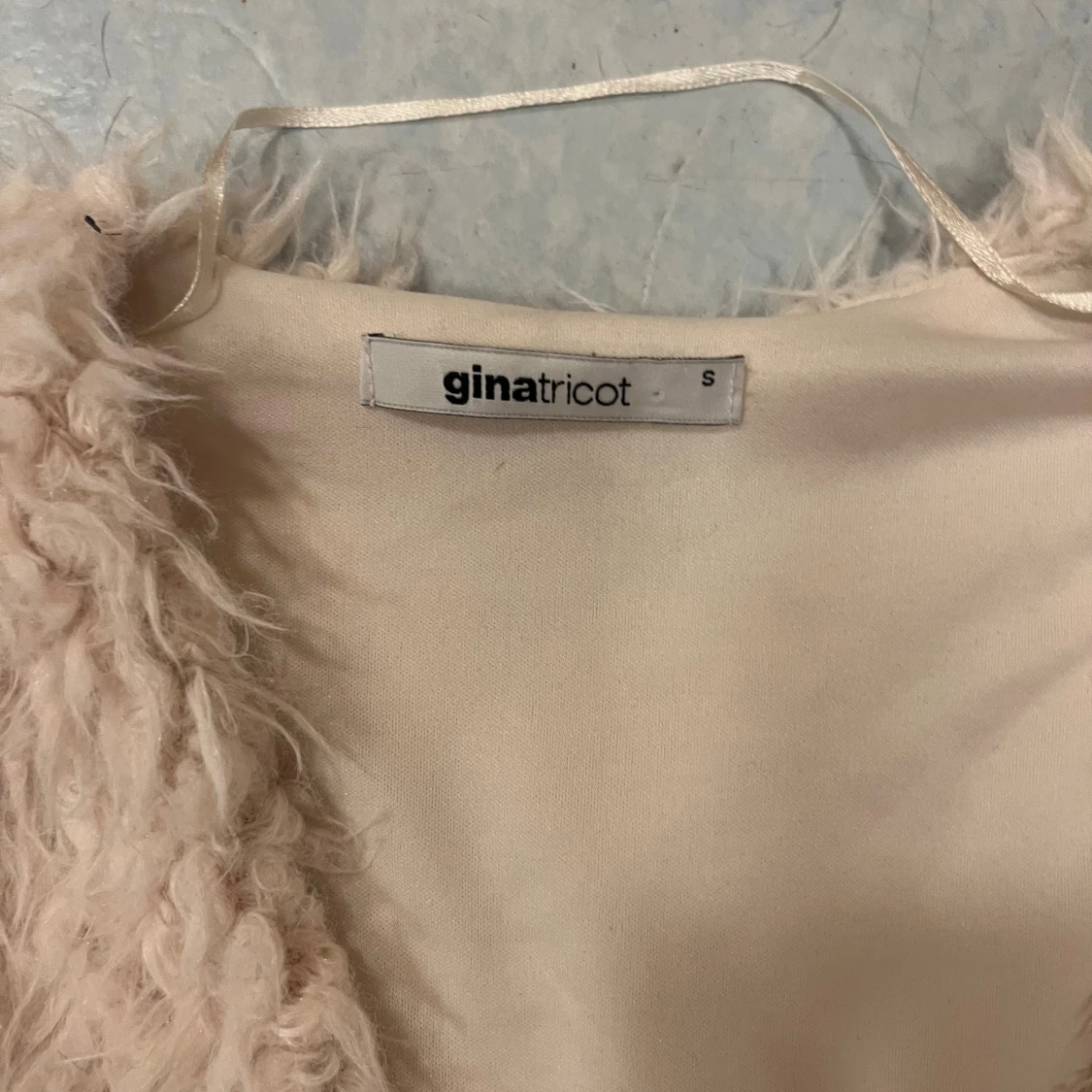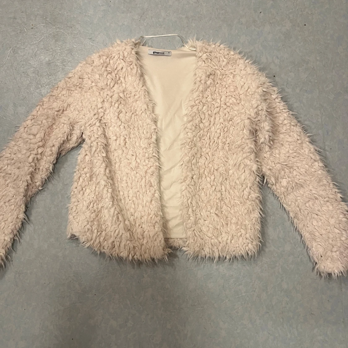 Fluffig och supermjuk beige pälsjacka från Gina Tricot. Jackan har lång ärm, öppen framtill och är fodrad på insidan. Perfekt för dig som vill ha en mysig och trendig look med lite extra attityd.