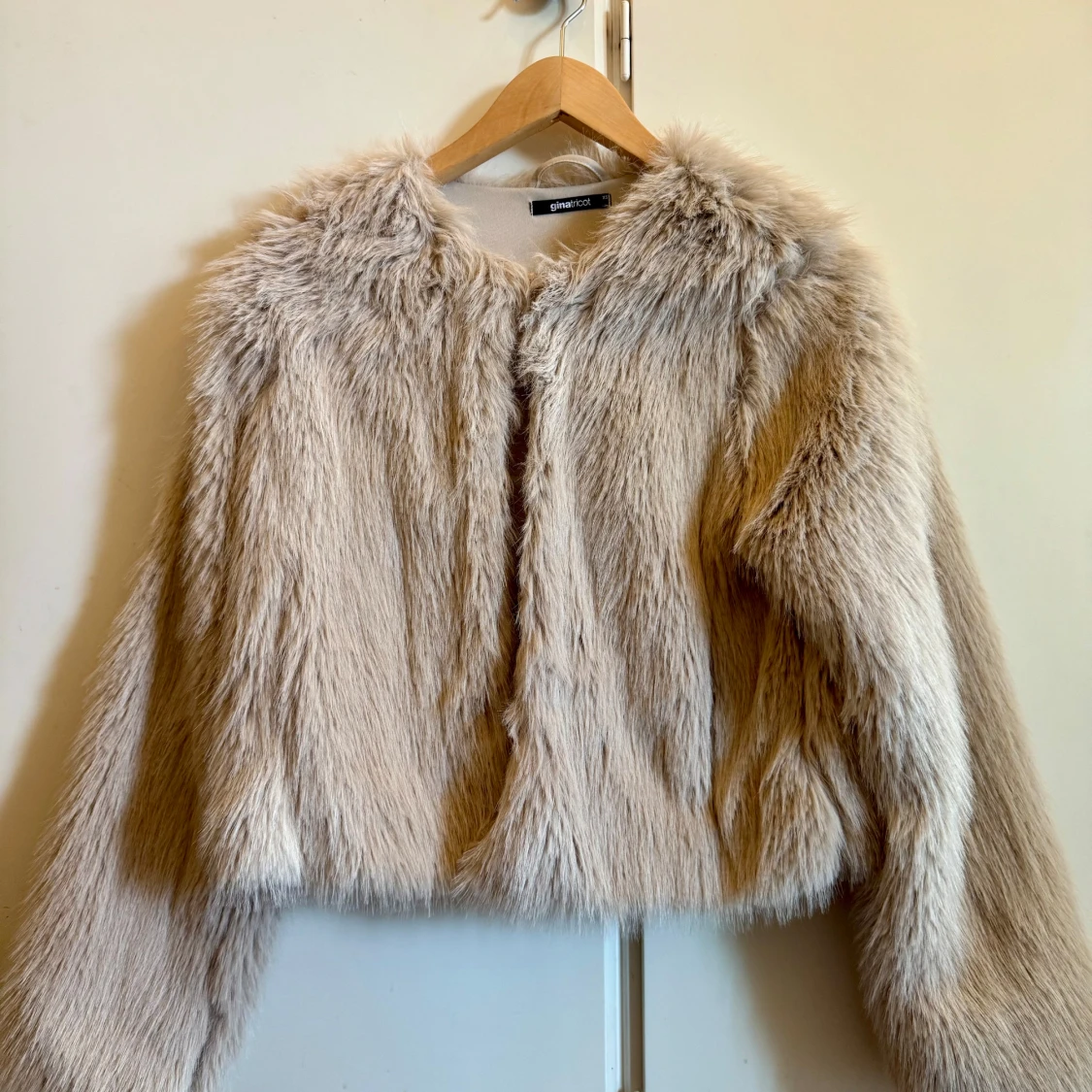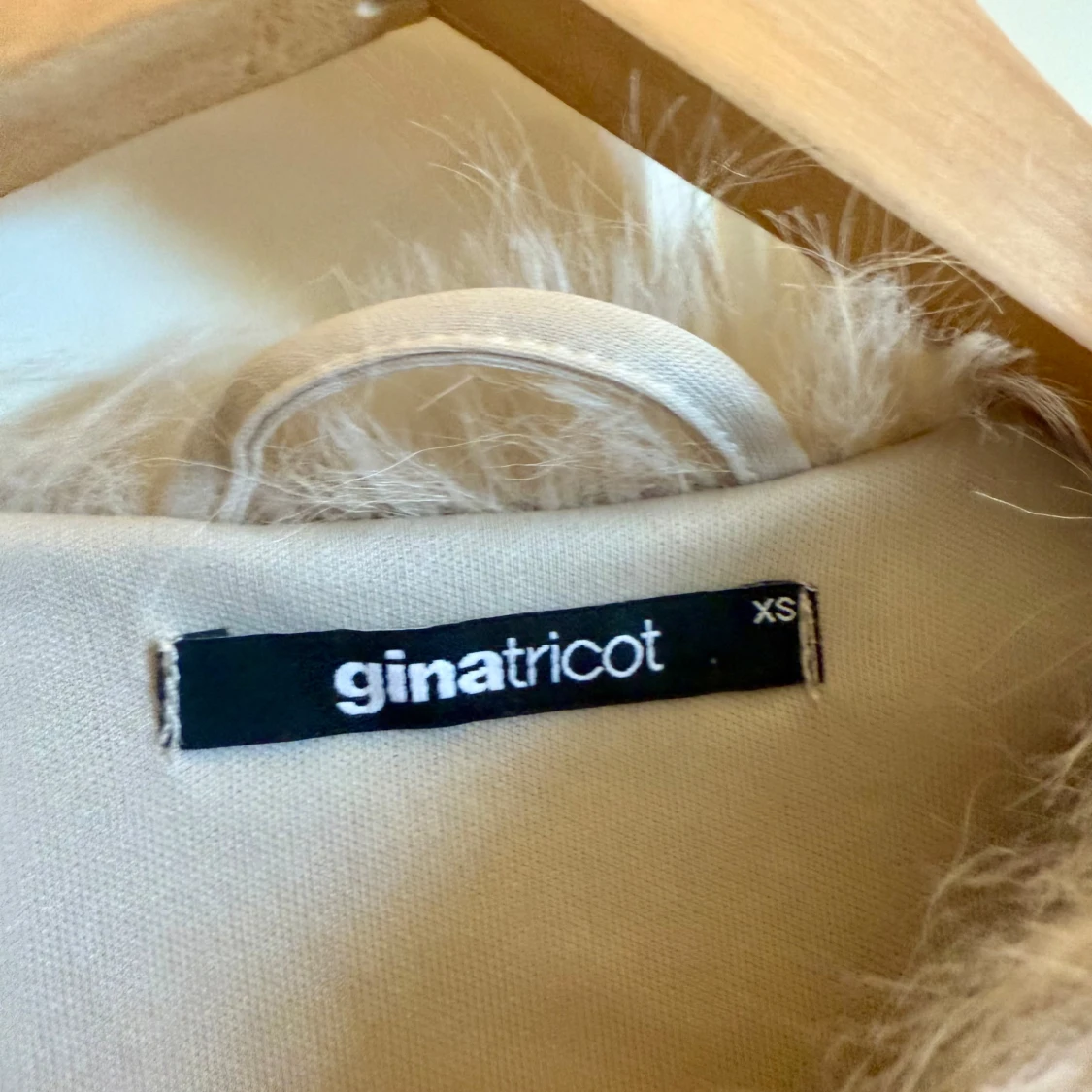 Säljer en fluffig beige pälsjacka från Gina Tricot i storlek XS. Jackan har långärmad design, och är tillverkad i mjukt syntetmaterial , endast testad , tryck gärna på ”köp nu”❣️