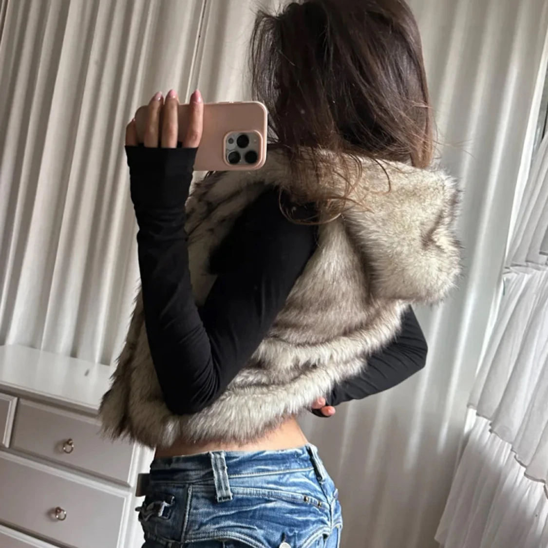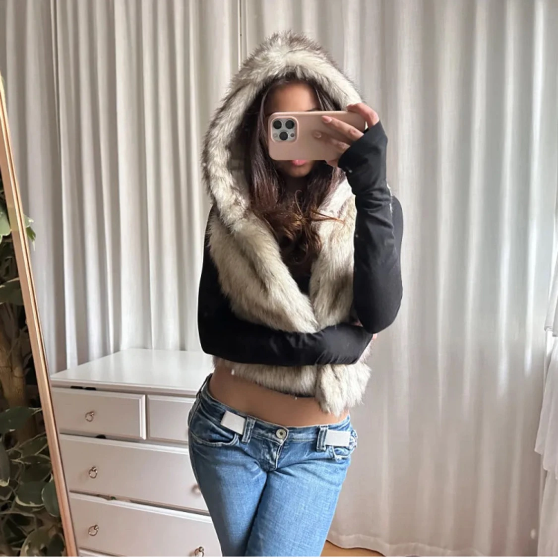 Säljer en fluffig beige pälsväst med huva 💓💓