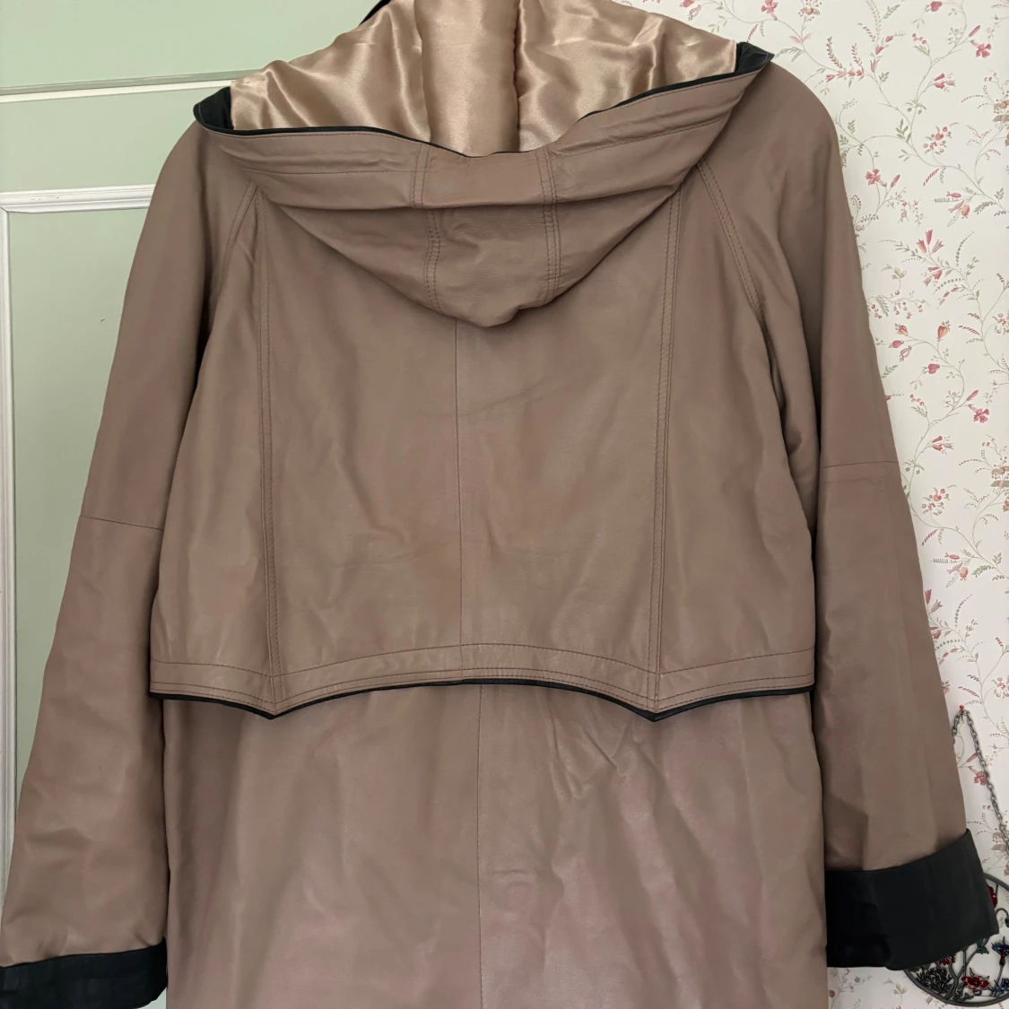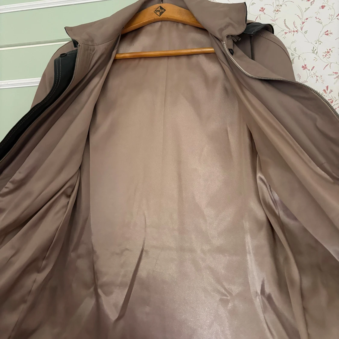 Säljer en beige parkajacka i storlek L med svarta detaljer och dragkedja. Jackan har huva, långa ärmar och två fickor framtill. Materialet är mjukt och känns som syntet, perfekt för kyligare dagar. Snygg och enkel design med svarta kontrastdetaljer. Hjälper min mormor, använd ett fåtal gånger💗vet ej märke