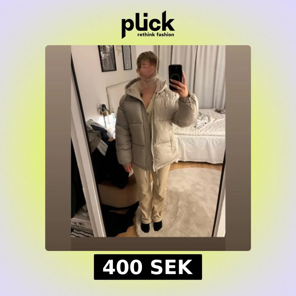 Säljer en beige pufferjacka från H&M i storlek XS. Jackan har huva, dragkedja framtill och är quiltad med en oversized look. Perfekt för kalla dagar och riktigt skön att bära. Färgen är ljusbeige och materialet är syntet.
