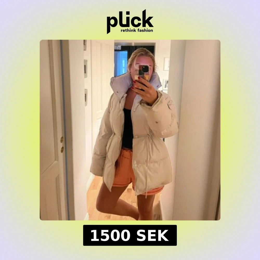 Säljer en beige pufferjacka från Meotine i storlek XS/S. Jackan har hög krage, dragsko i midjan och knappar framtill. Oversized passform och långa ärmar. Perfekt för kalla dagar🤩