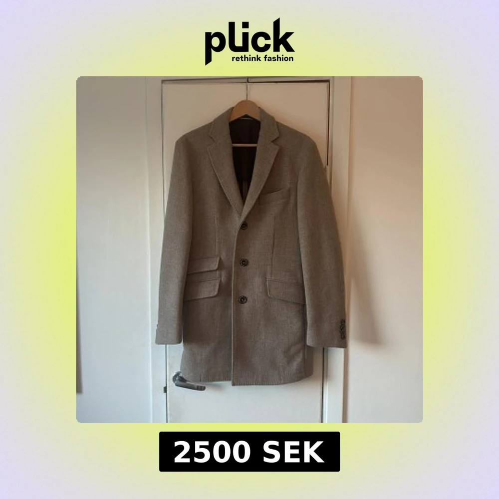 Elegant beige rock från Brecos i en blandning av ull, polyamid och kashmir. Rocken har en klassisk design med tre knappar framtill och fickor med lock. Insidan är fodrad med ett stilrent rutigt mönster. Nypris 4500, mitt pris 2500. Använd en gång och är fodrad och varm.
