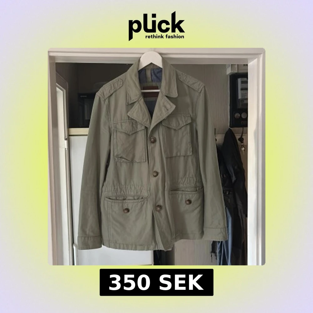 Stilren grön jacka från Massimo Dutti med fyra fickor framtill och snygga knappar. Jackan har klassisk krage, axelklaffar och detaljerad sömnad. Perfekt för dig som vill ha en clean och tidlös look.