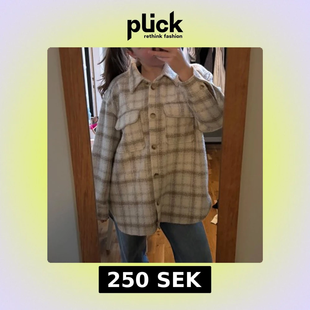 Säljer en beige rutig overshirt med knappar framtill. Den har långa ärmar och två bröstfickor. Perfekt för lager-på-lager-stil.