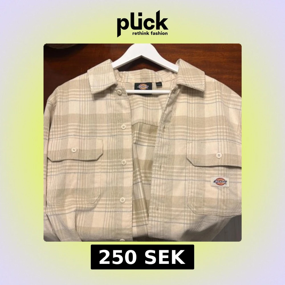 Snygg overshirt från Dickies i beige och ljusa toner med rutigt mönster. Skjortan är tillverkad i manchester, har två bröstfickor med knappar och klassisk krage. Perfekt att slänga över en t-shirt för en chill look. Sol ny! Nypris: 700/800kr Hör av vid frågor!🙌🏽 Alltid öppen till prisförslag!