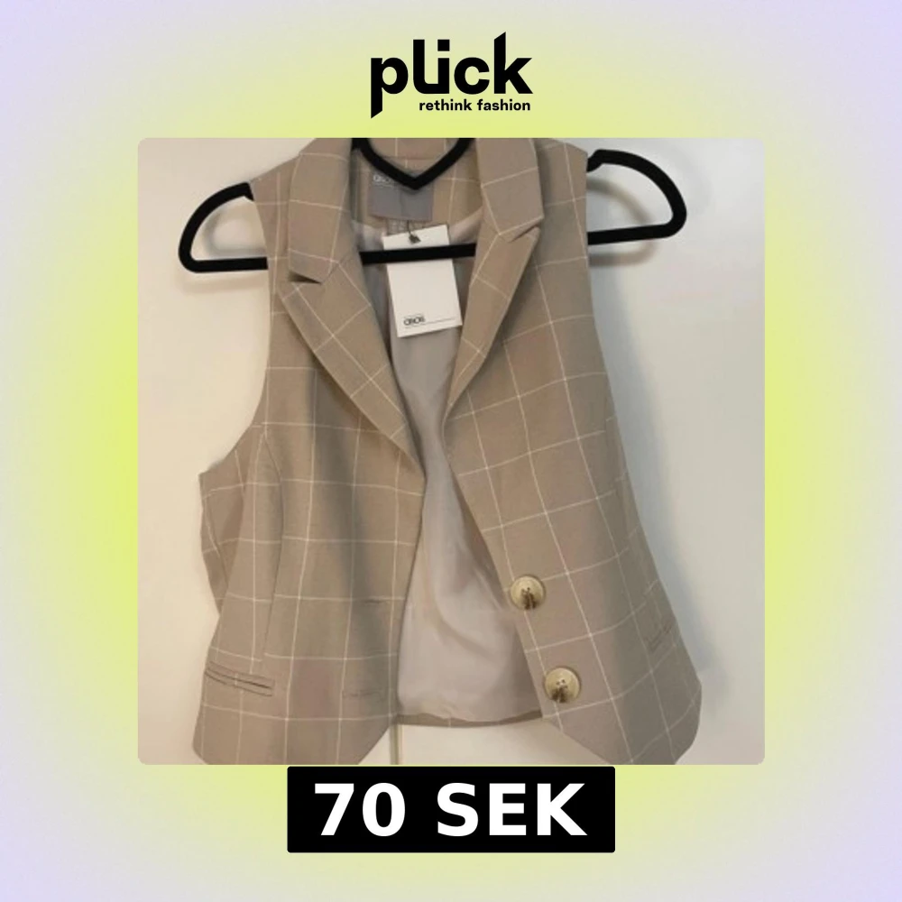 Snygg beige väst från ASOS med klassiskt rutigt mönster och två stora knappar framtill. Västen har krage och är fodrad med ljus insida. Perfekt att styla över en t-shirt eller skjorta för en trendig look.