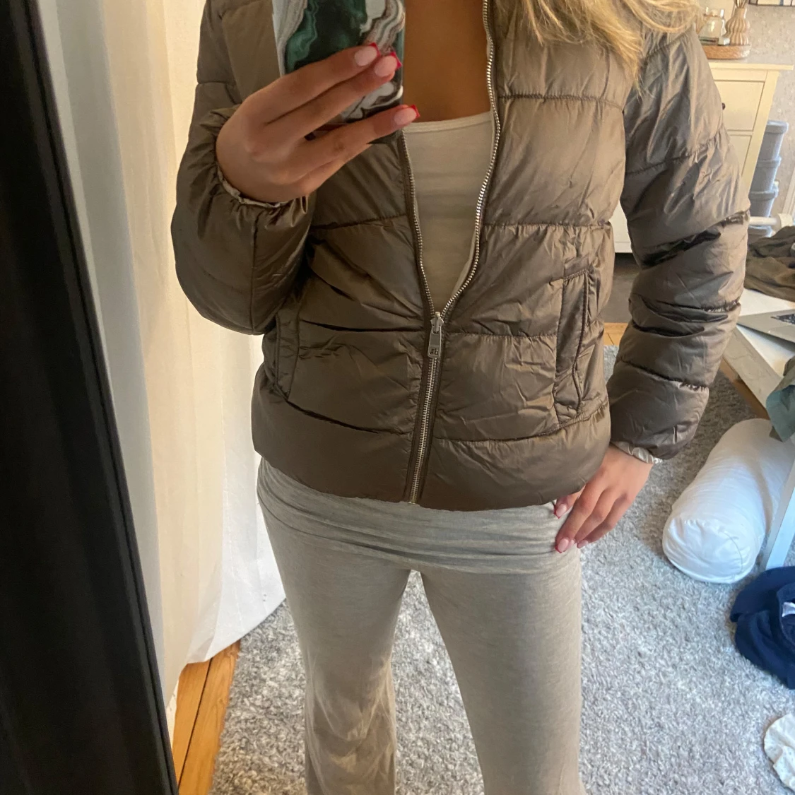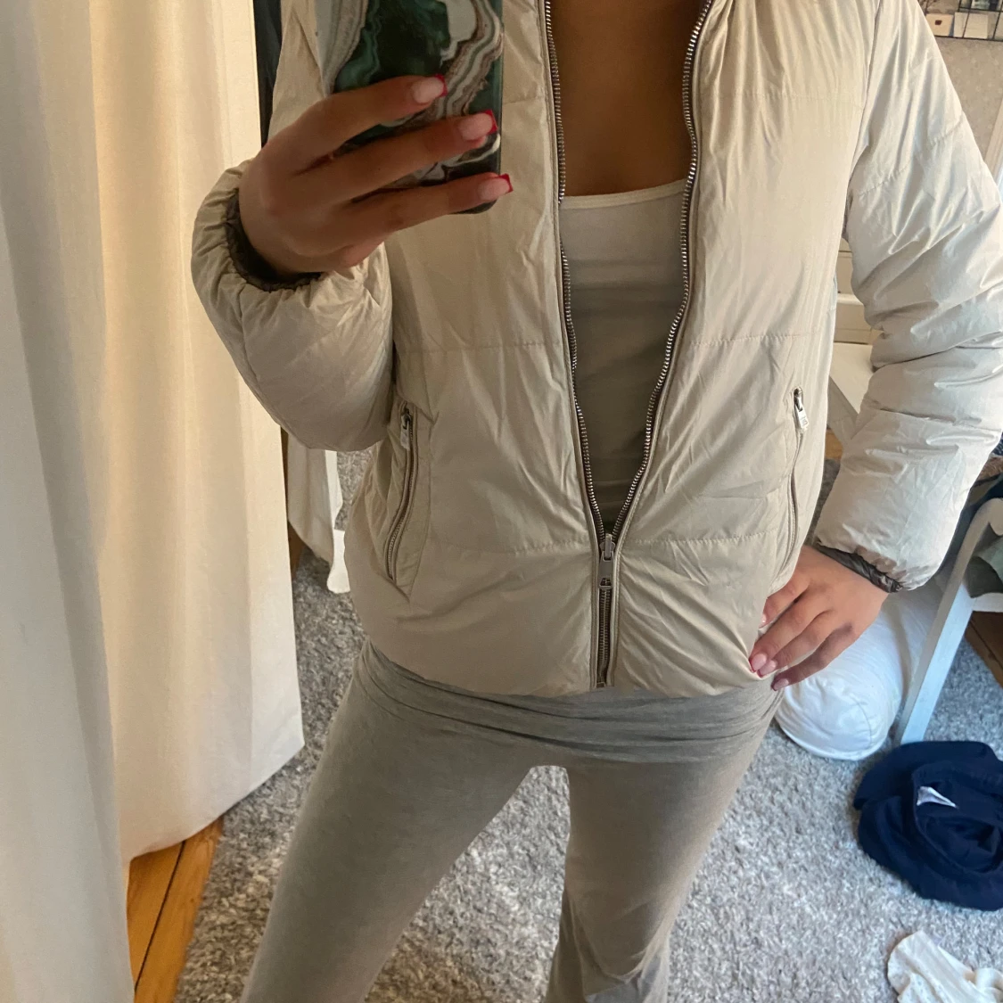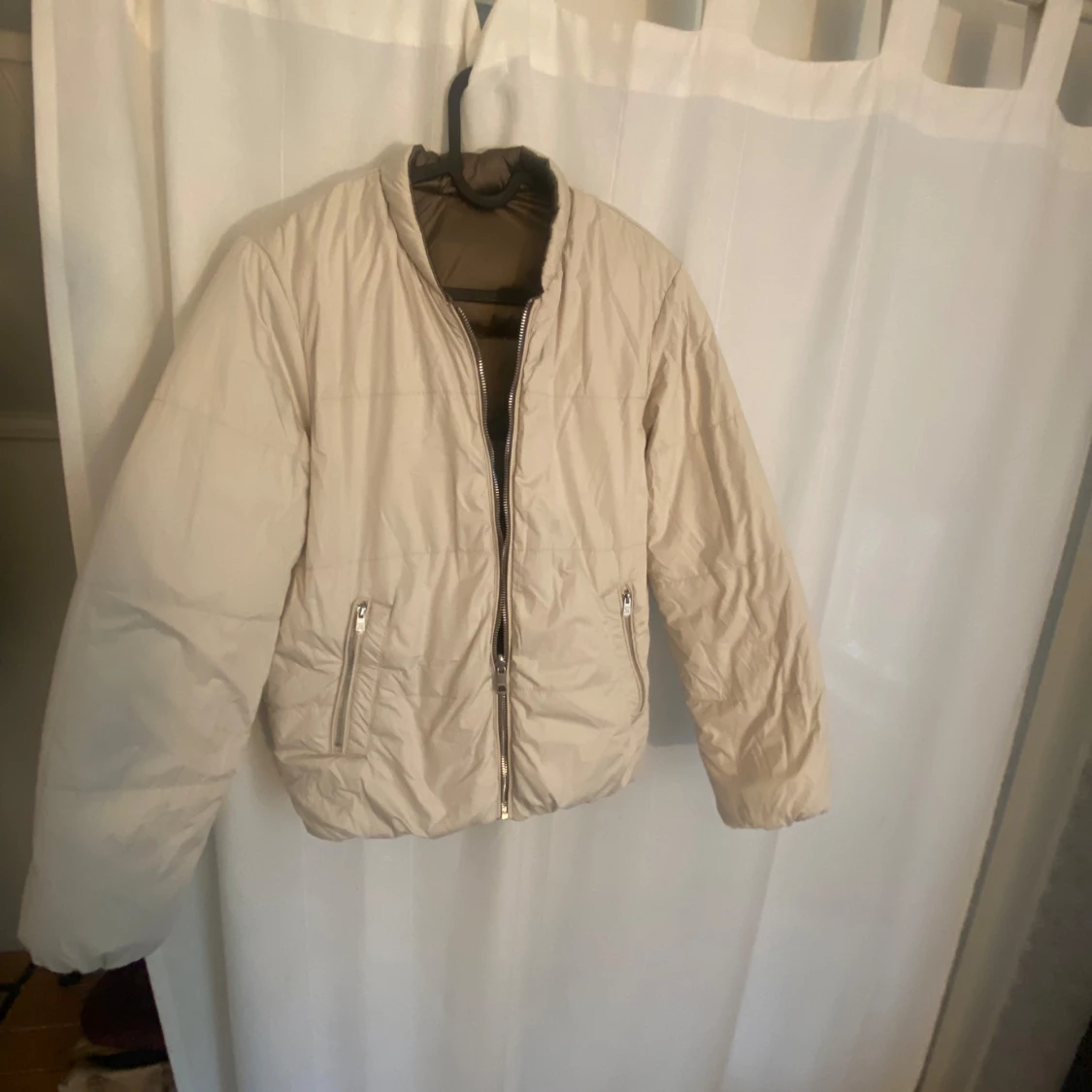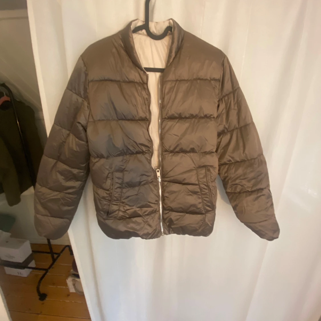 Säljer en superpraktisk vändbar pufferjacka som är perfekt för både höst och vår. Ena sidan är beige och den andra brun